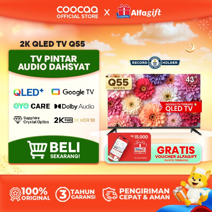 TERBARU COOCAA TV 43 inch Q55 - GOOGLE TV - 2K QLED - Dolby Audio - Eye Care - Sapphire Crystal Optics - Bluetooth 5.0 -