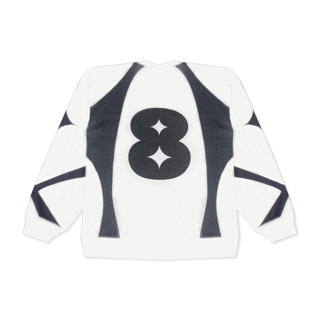 LOOP White Cyber Grid – Sweater Rajut Waffle Longsleeve Oversize Boxy Crewneck Unisex Streetwear Skena Pria Wanita