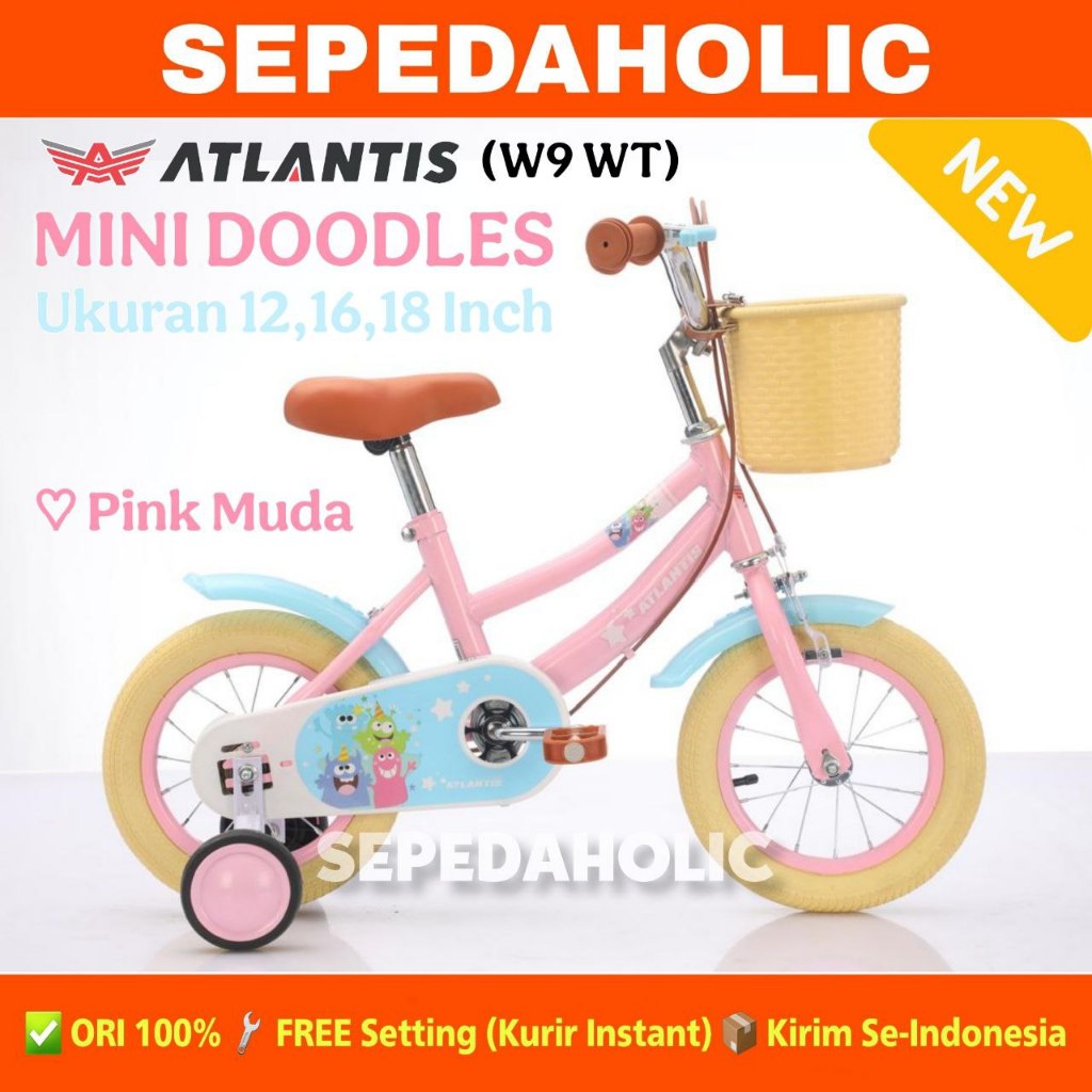 Sepeda Anak Perempuan ATLANTIS W9 WT MINI DOODLES Keranjang Ukuran 12 16 18 Inch Usia 2-8 Tahun