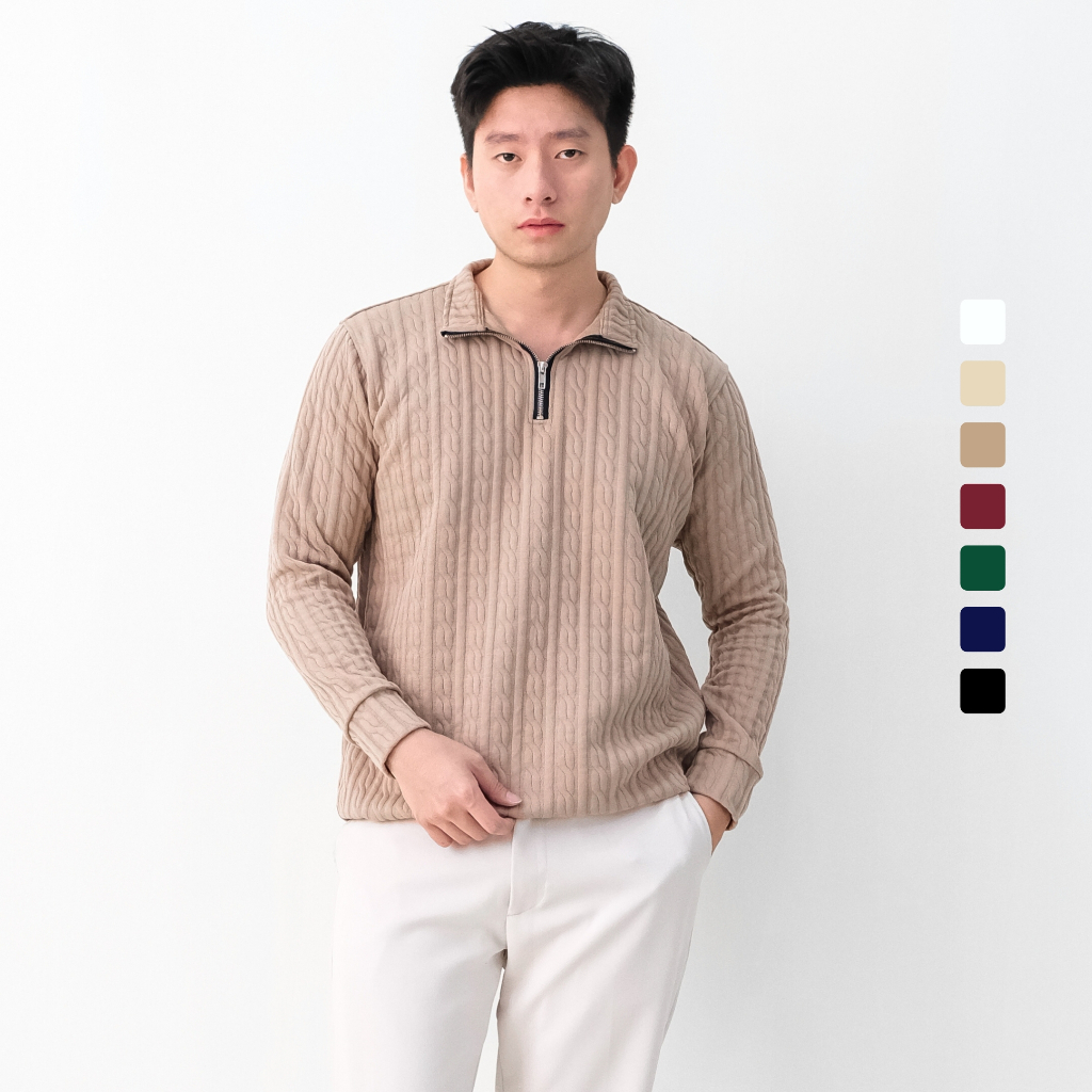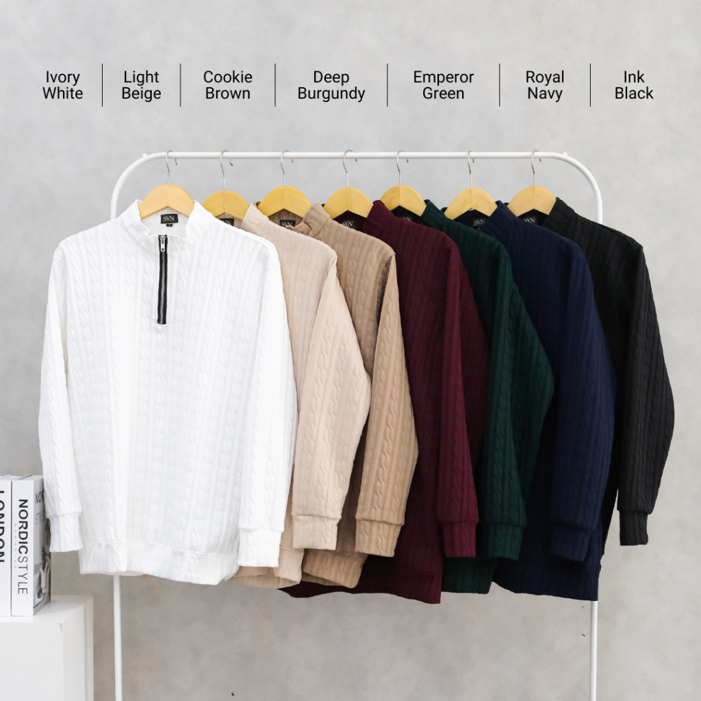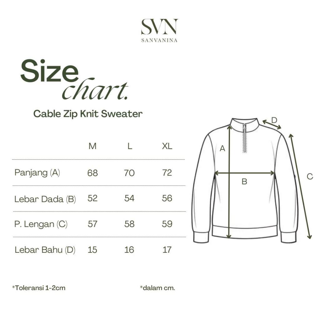 SANVANINA Cable Upper Zip Knit Sweater | Jaket Rajut Lengan Panjang Pria | Atasan Sweatshirt Pria