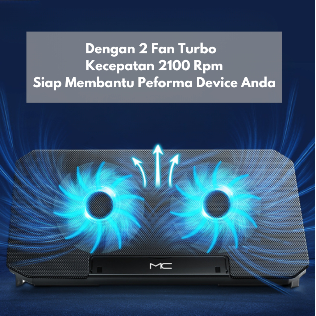Cooling Pad Kipas Laptop Fan Cooler Pendingin Leptop Gaming Mute Cooling Q100 Fit 12 Sampai 16 Inch Turbo Speed 2100 Rpm
