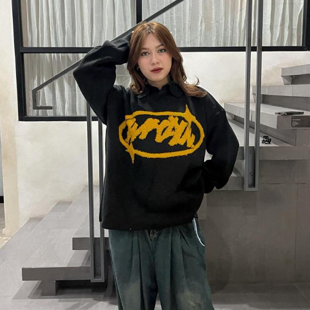 WP Company - Knitwear BOXY Delight Black Football Knit Switer Unisex /Sweater Rajut Pria & Wanita