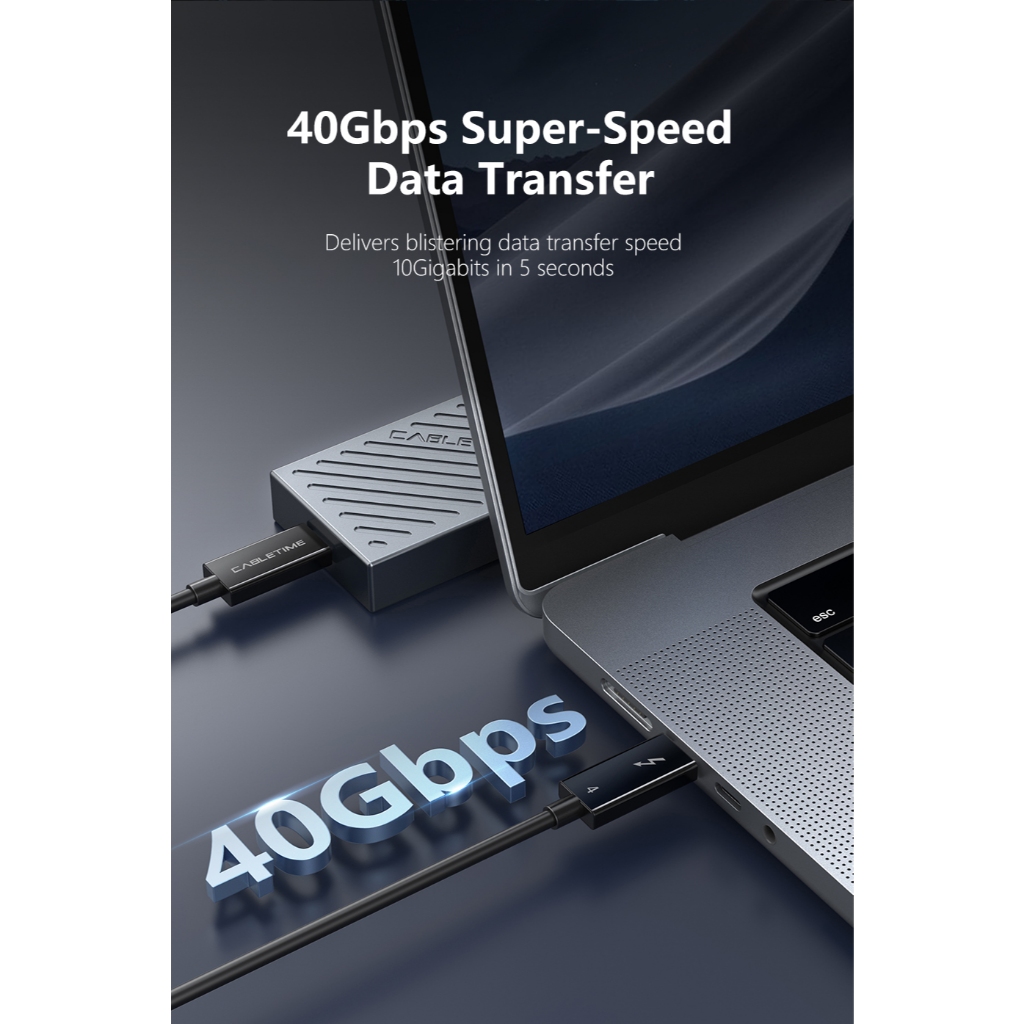 Cabletime Kabel Data Thunderbolt 4 Usb-C 4.0 To Usb C Pd100W 8K 60Hz 40Gbps Intel Certified