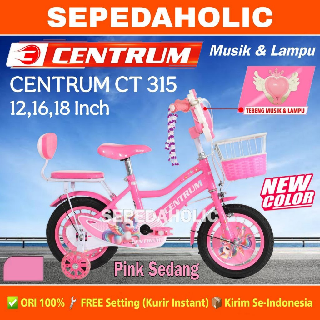 Sepeda Anak Perempuan CENTRUM CT 315 / VELION 81 Musik Ukuran 12 16 18 Inch Keranjang Usia 2-8 Tahun