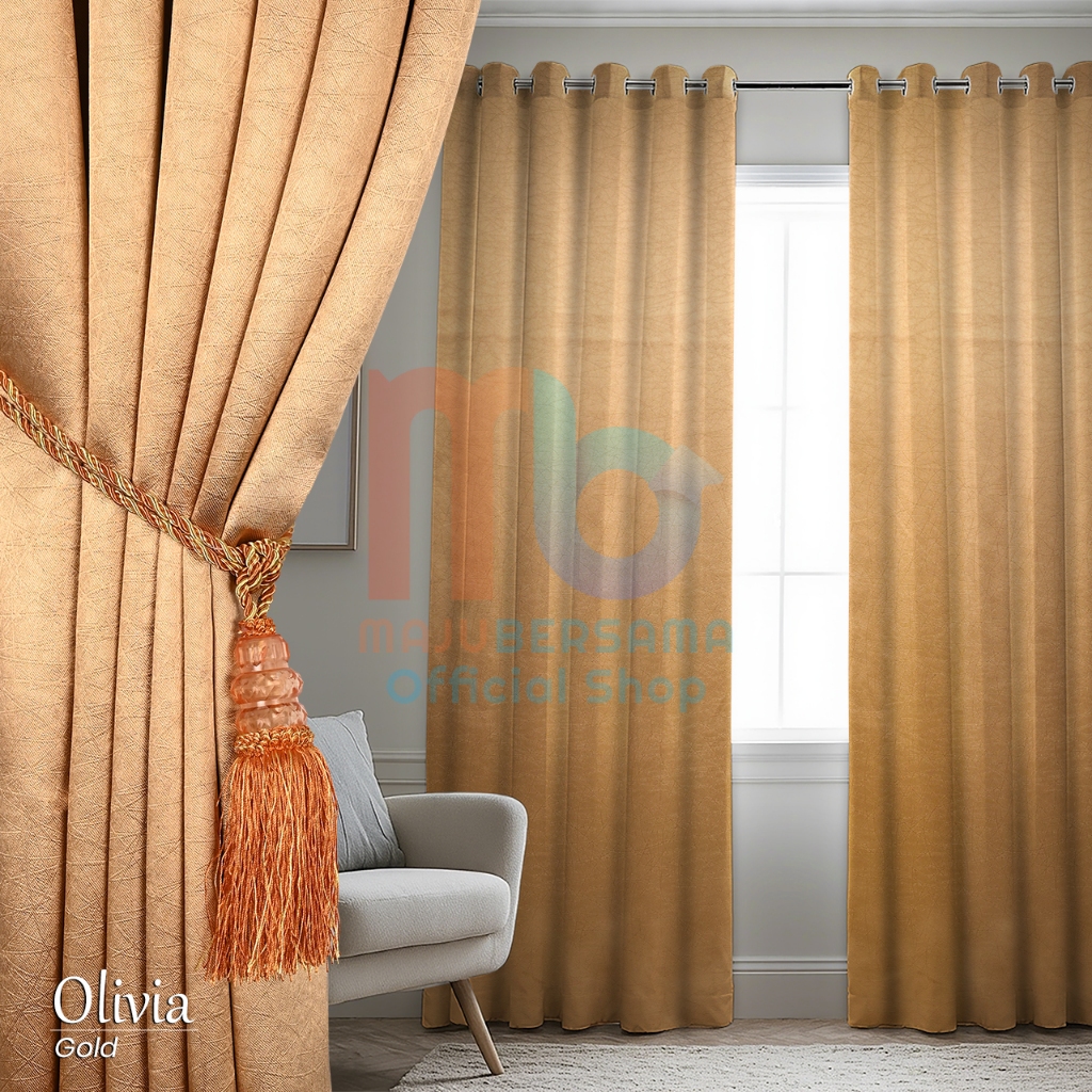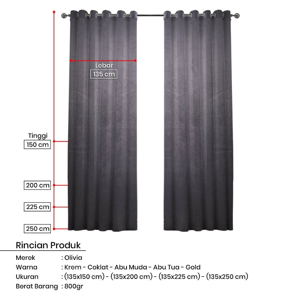 OLIVIA Gorden Jendela Pintu Blackout Tebal Motif Premium Tirai Embos 12 ring Lebar 135 CM