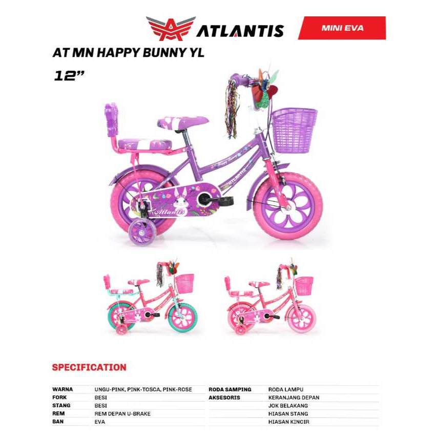 ATLANTIS MINI HAPPY BUNNY EVA 12" inch - Sepeda Anak Perempuan Sepeda Mini