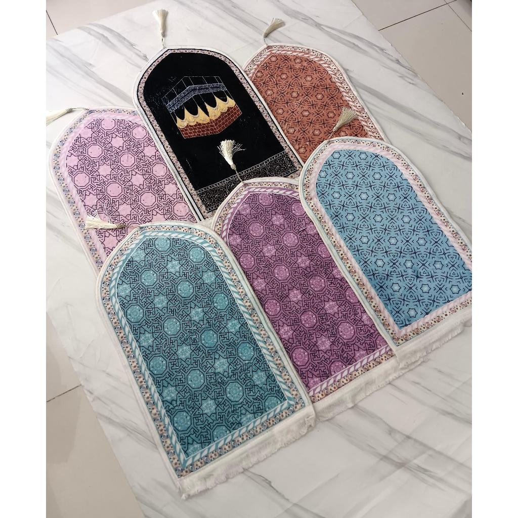 Sajadah Kubah Mini Polos Embos Warna Premium Antislip 35x65cm