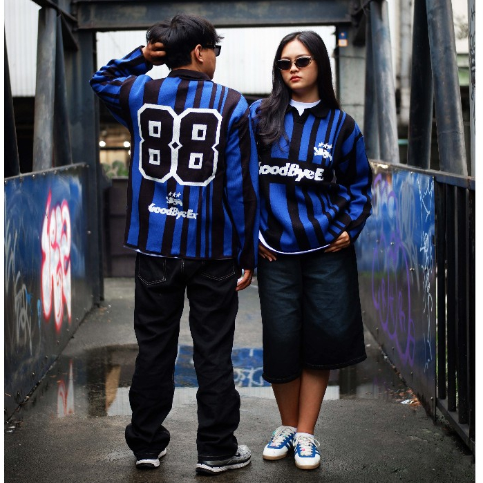 GOOD BYE EX - Crewneck Knit Boxy Nerazzurri