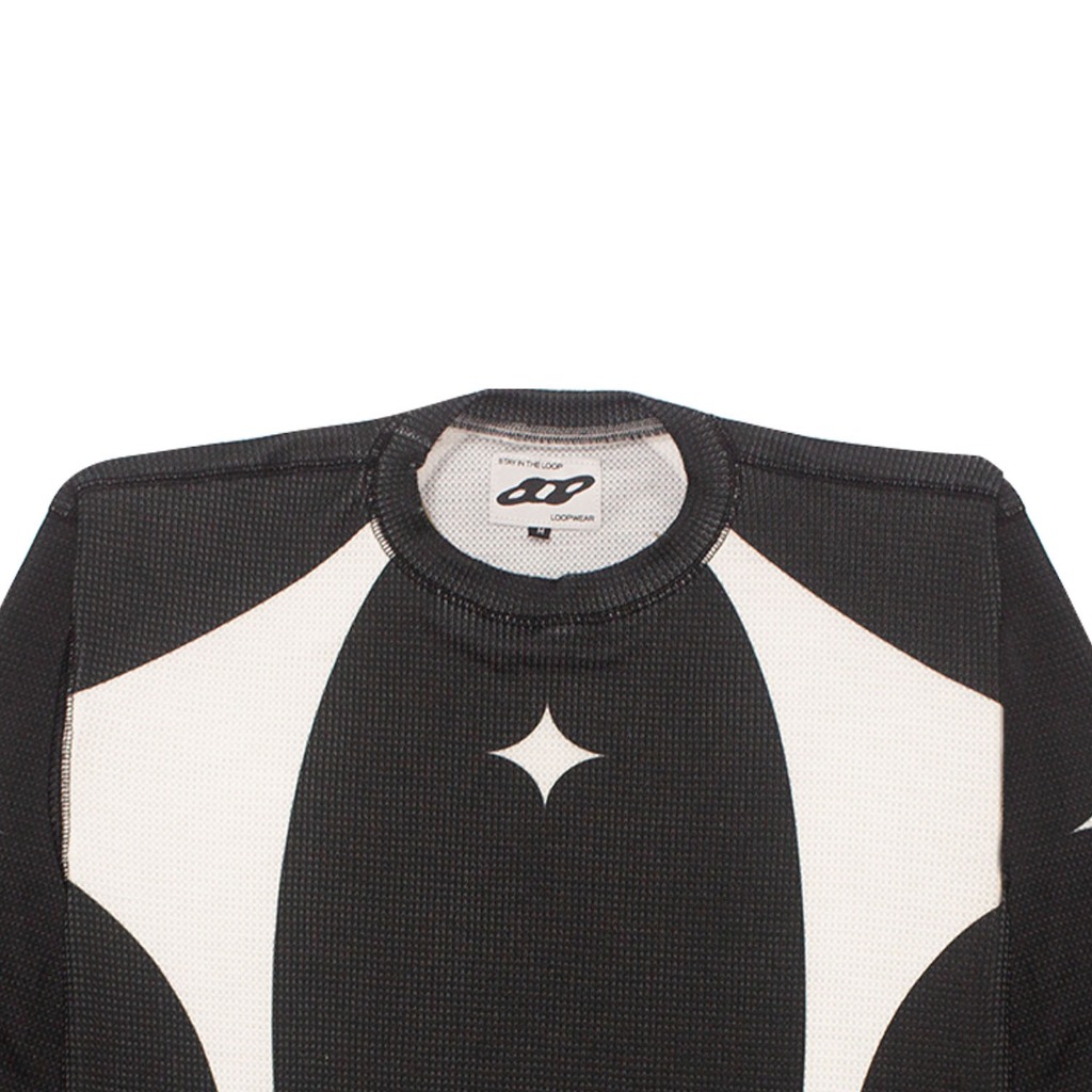 LOOP Black Cyber Grid – Atasan Sweater Waffle Rajut Longsleeve Boxy Oversize Crewneck Sweatshirt Pria Wanita Streetwear Skena
