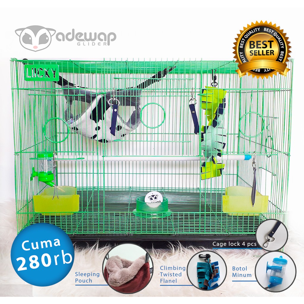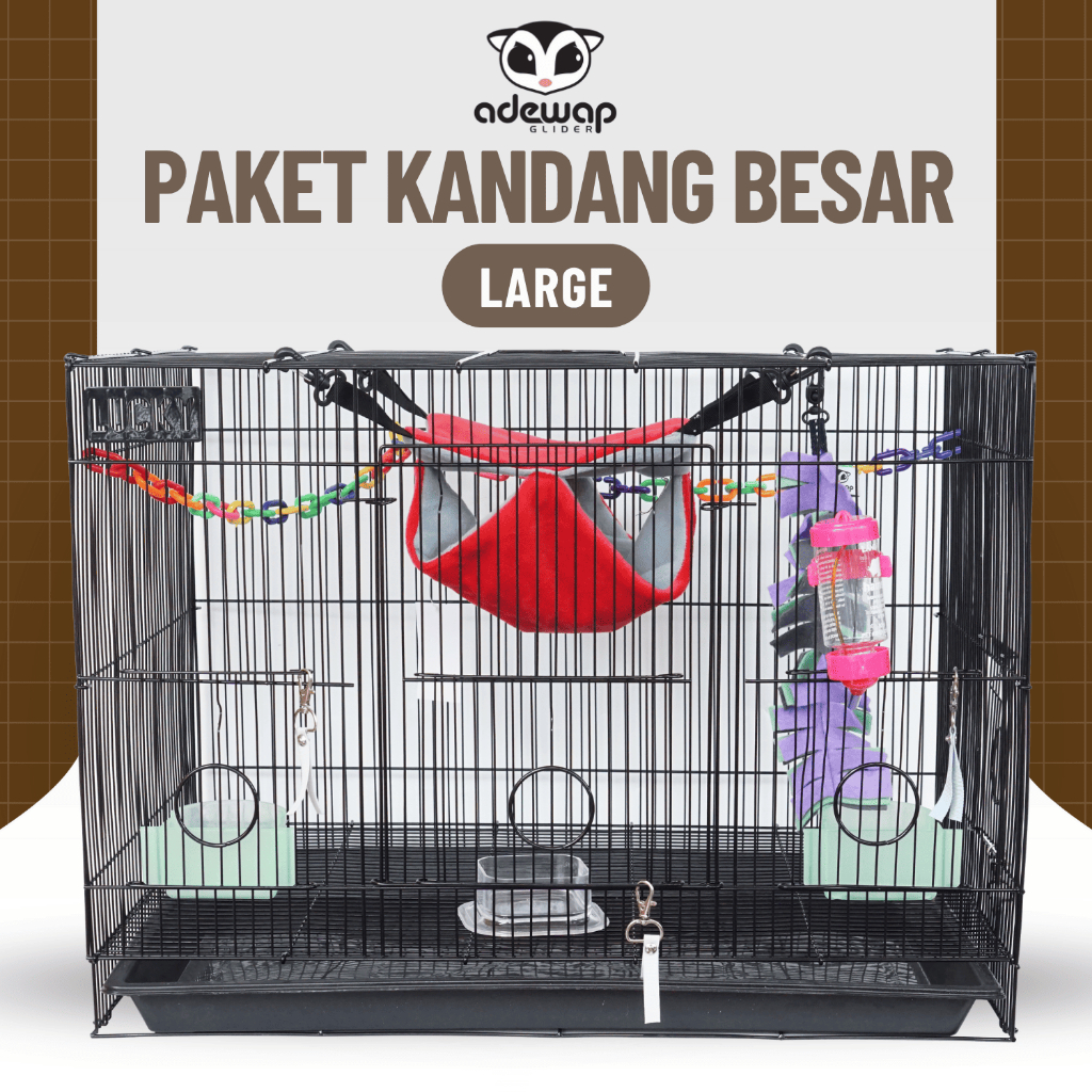 Adewap Glider Paket Hemat 1 Kandang Komplit Fullset Ukuran Large Besar Sugar Glider