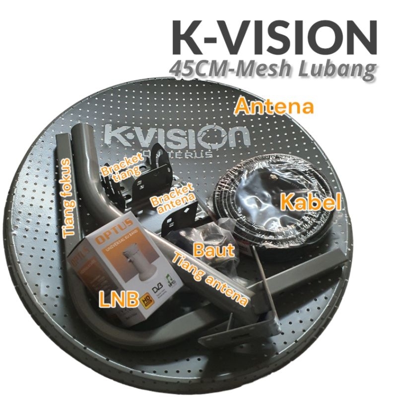 Kvision Antena parabola Odu 45 cm lubang mesh plus lnb & kabel
