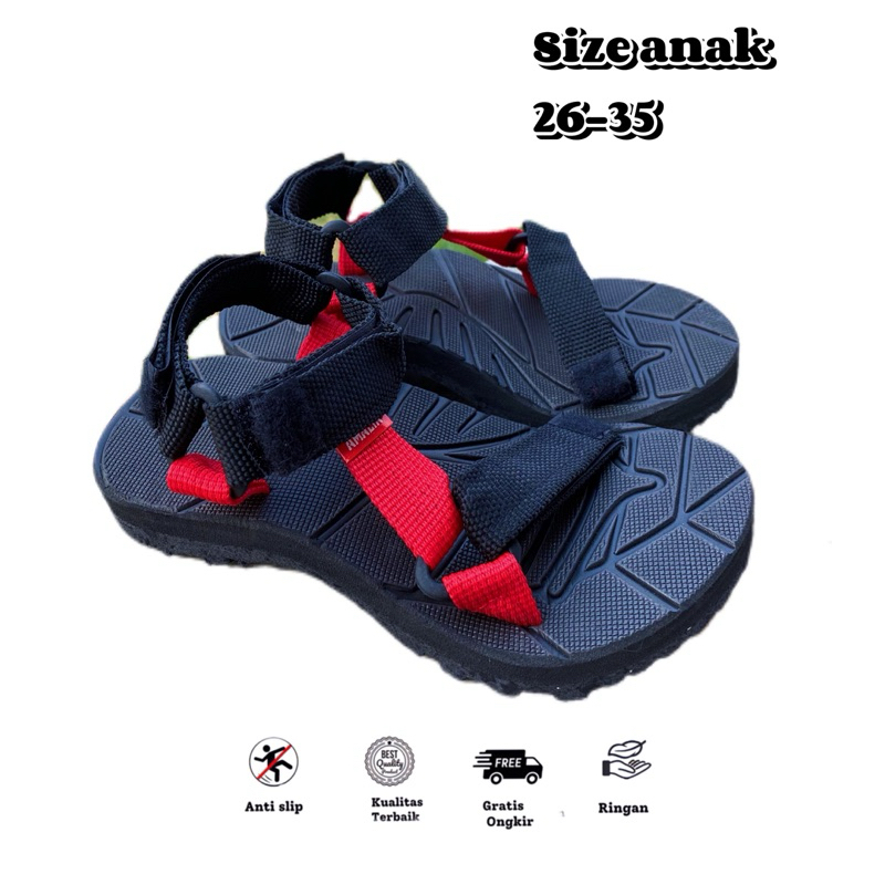 Sandal Gunung Anak Size 26-35 Pria Wanita Outdoor Sndal Fashion -Upper Polyster Webbing + Univrsal Strapping