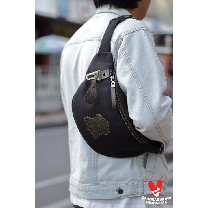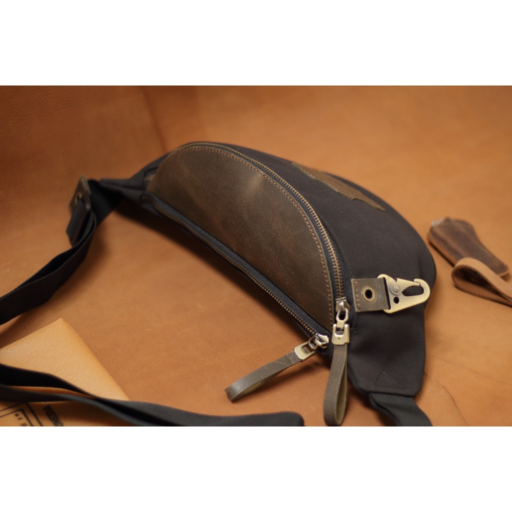 Pusiill -Waistbag pria / Tas Selempang Pria & Wanita Kombinasi Kulit Sapi Asli + Canvas Tebal / Tas pinggang A07