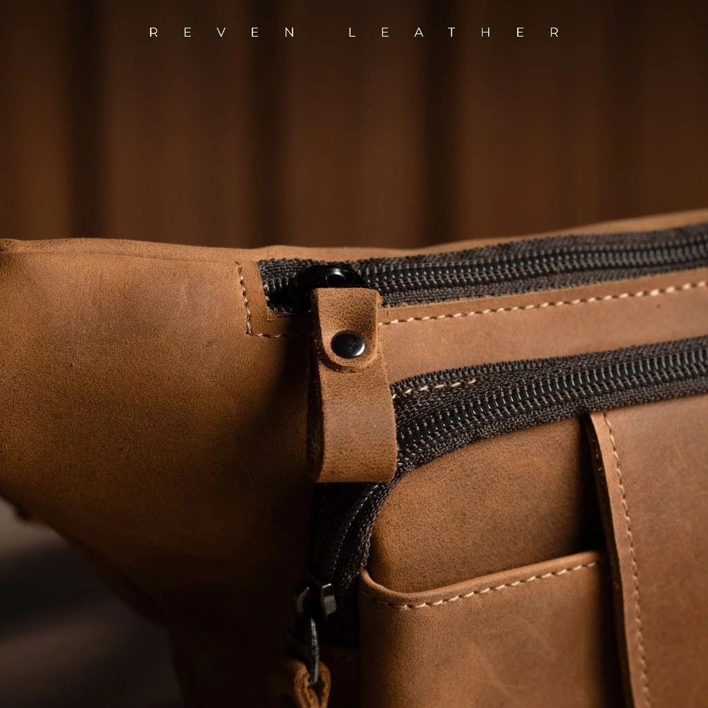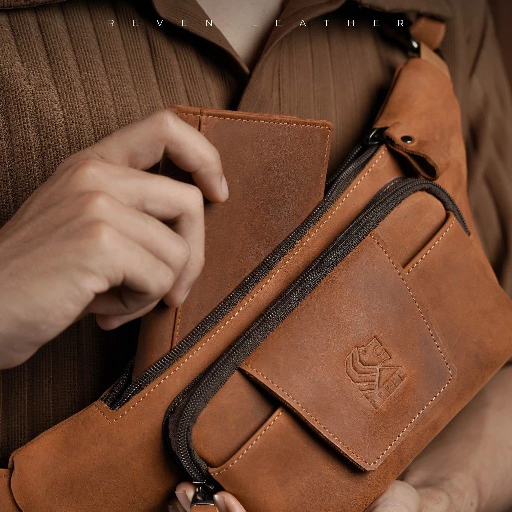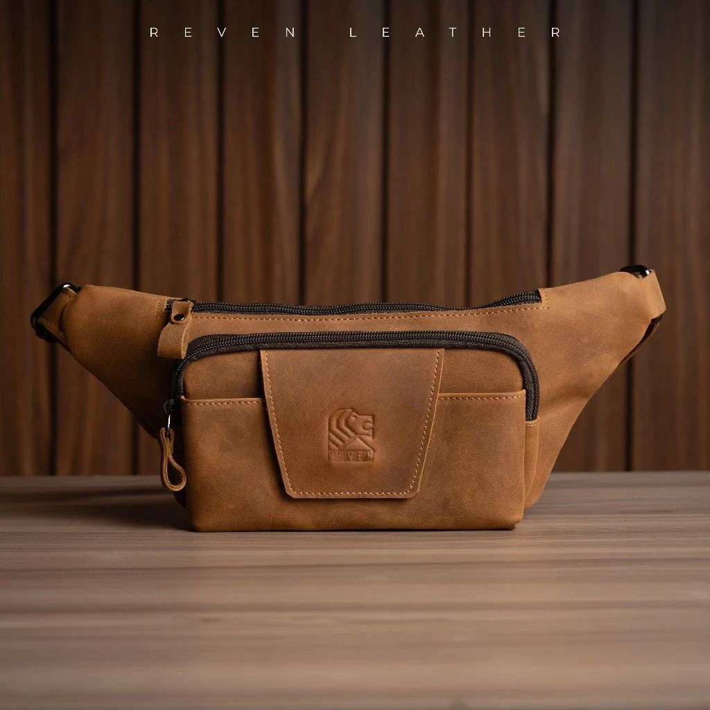 Reven Leather Mahameru Waistbag - Tas Selempang Pinggang Pria Kulit Sapi Asli Crazy Horse Original Free Dompet Stnk