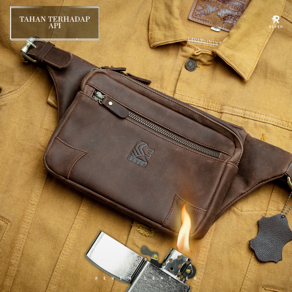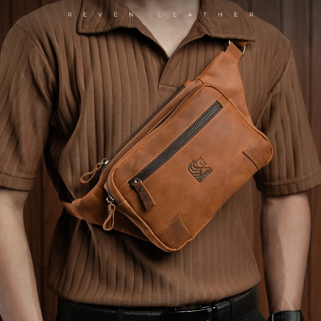 Tas Kulit Selempang Reven Hazar Waistbag Fashion Pria Cowok Kulit Sapi Asli Original Premium Leather
