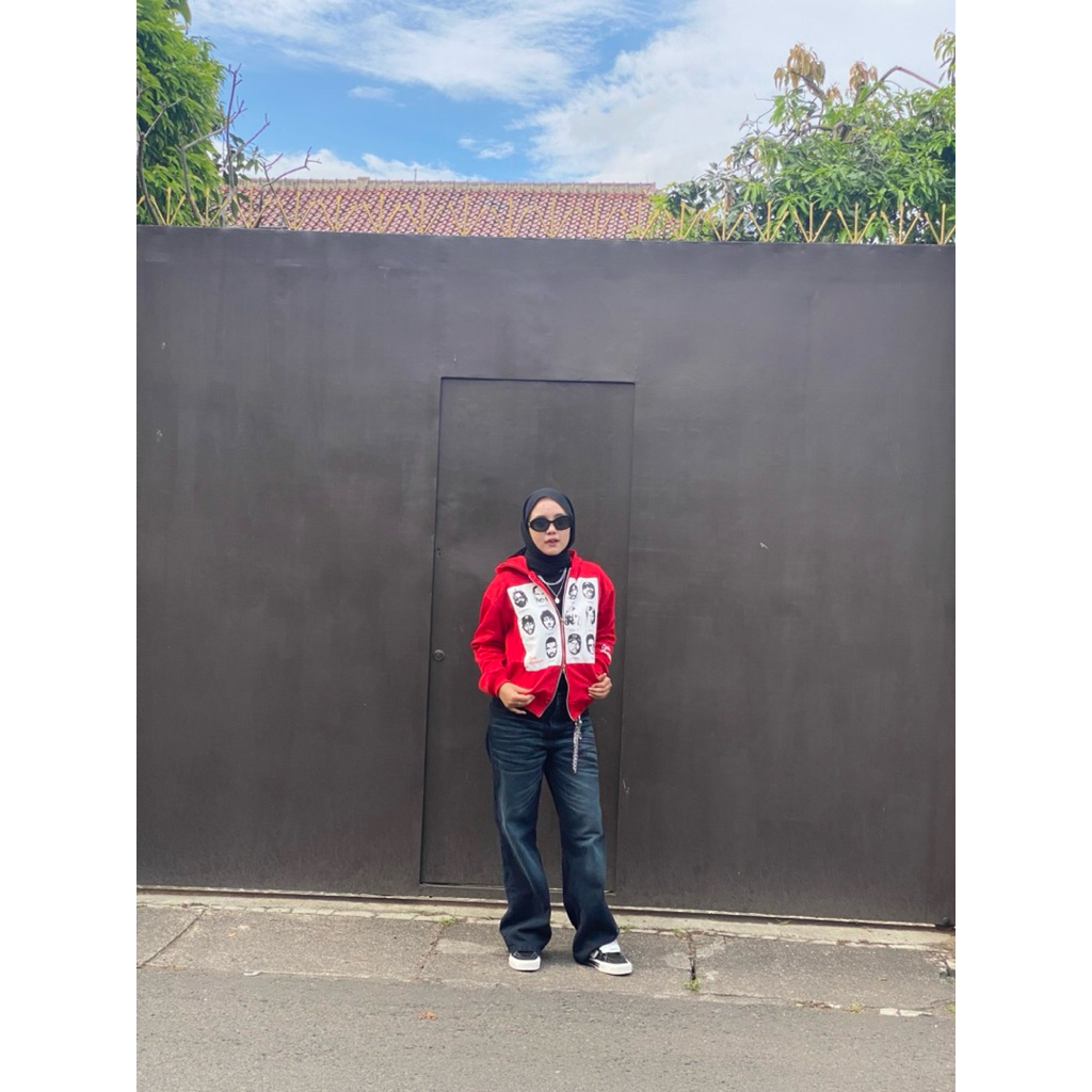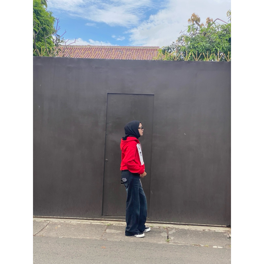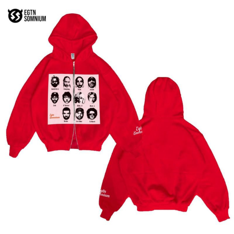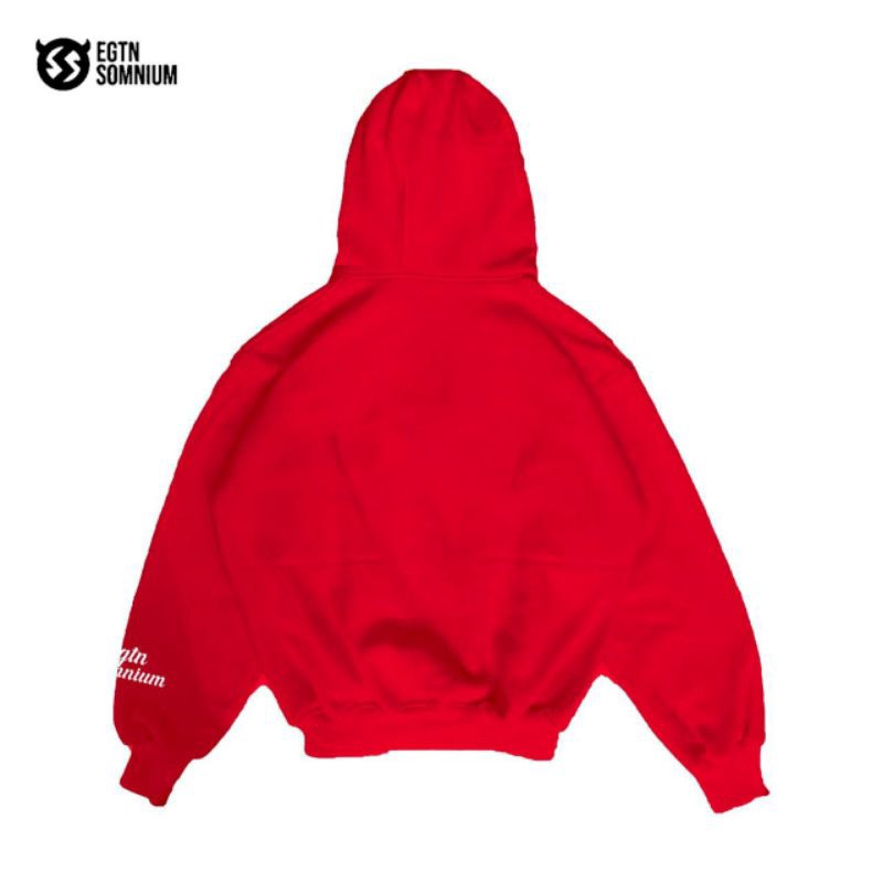 EGTN SOMNIUM Hoodie Boxy Double Resleting R&B Warna Merah Unisex Pria Wanita