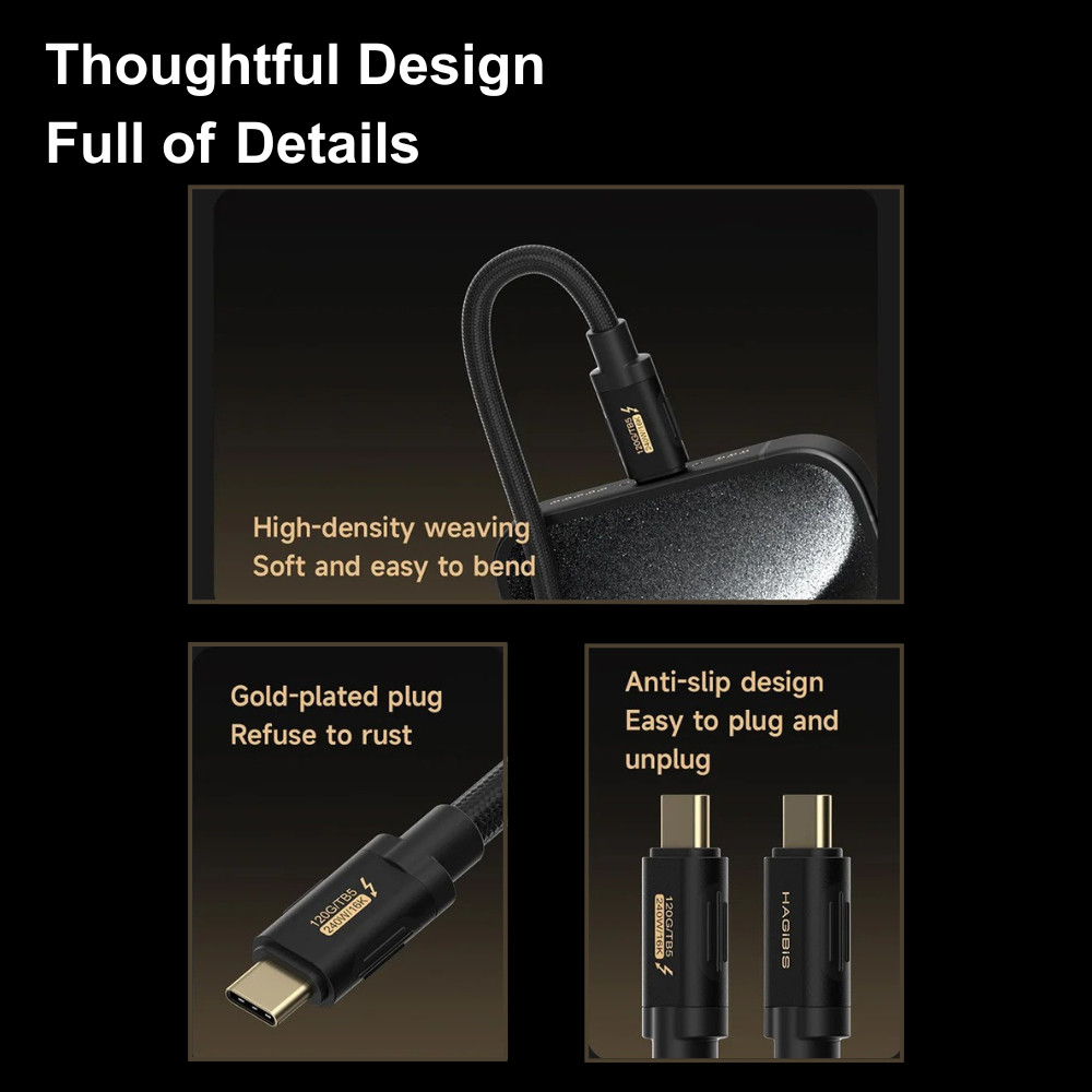 Hagibis Cable Thunderbolt 5 Cable Up To 120Gbps Bandwidth Boost 240W Charging 80Gbps Date 16K/8K Compatible With Thunder