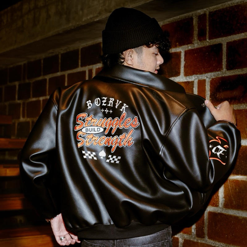 BOZRVK Jaket Varsity Uni Hitam Leather Full Bordir