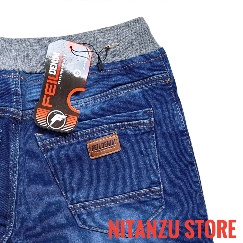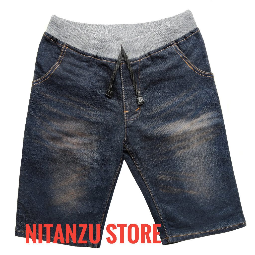 Celana Pendek Pria Jeans Rip Feil Tebal Melar