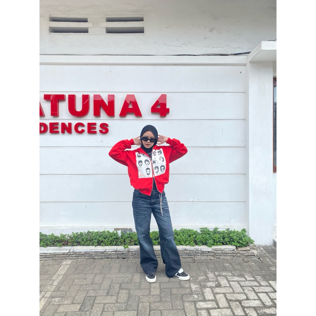 EGTN SOMNIUM Hoodie Boxy Double Resleting R&B Warna Merah Unisex Pria Wanita