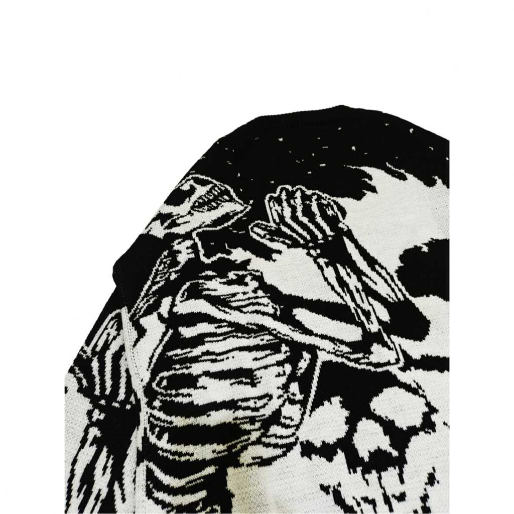 msa Sweater Rajut Skeleton Flame Unisex – Black White knitwear akrilik oversize