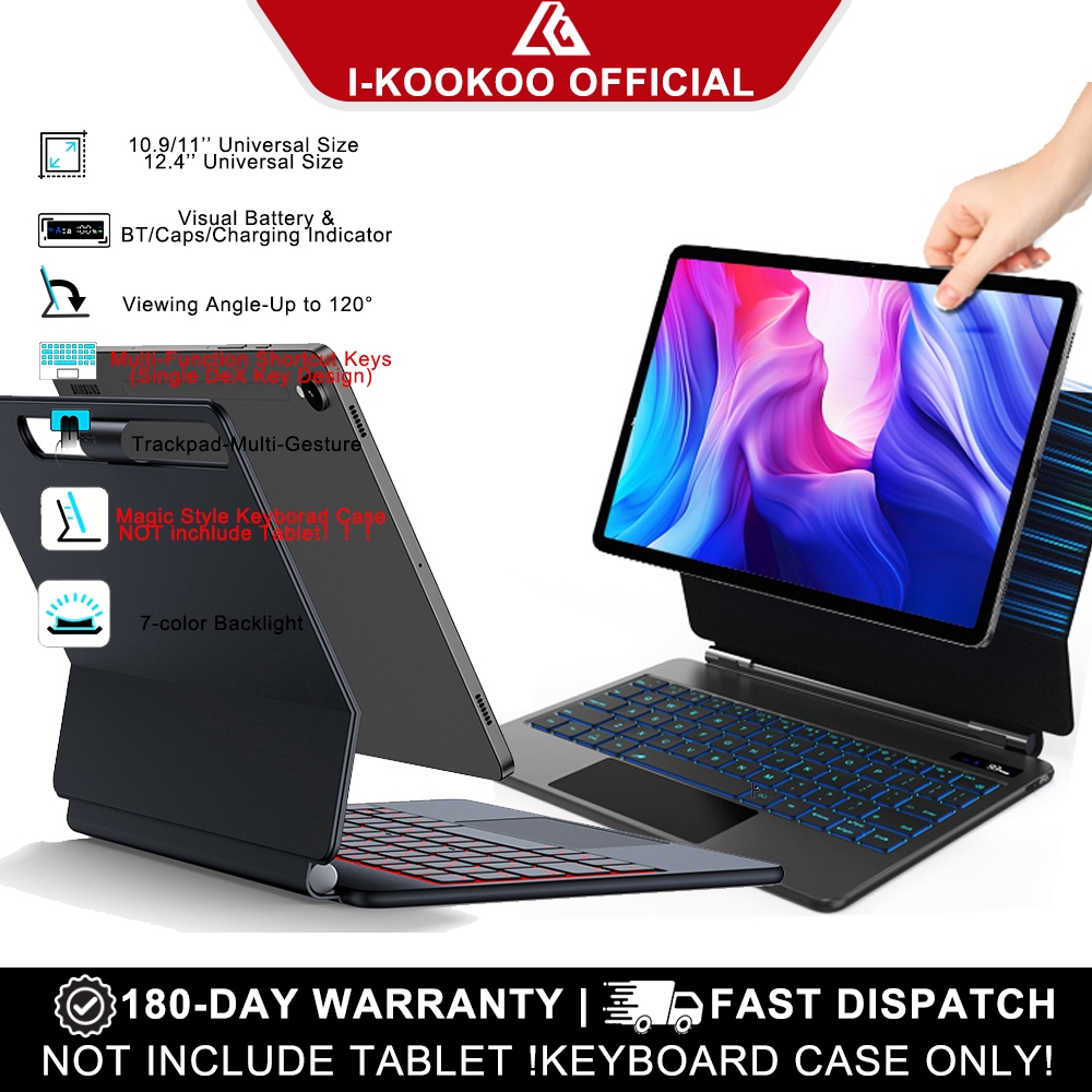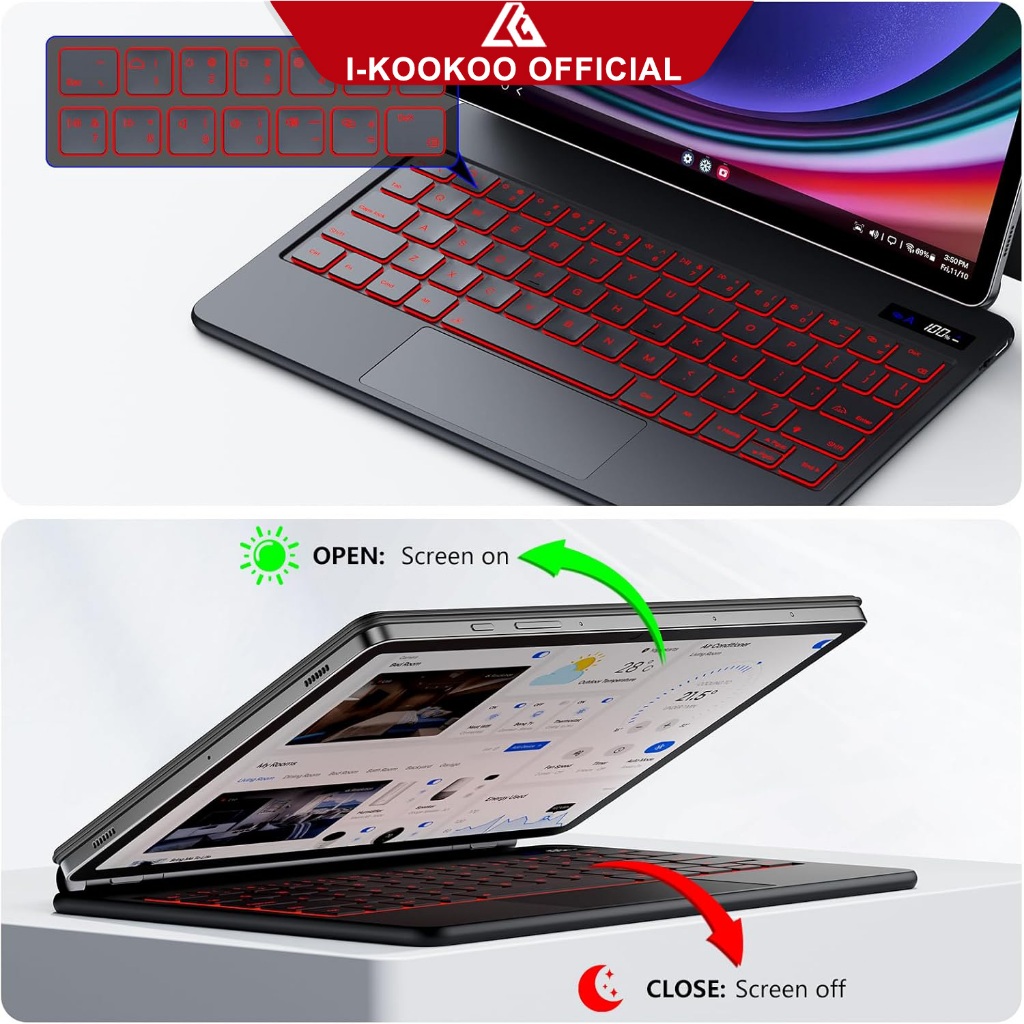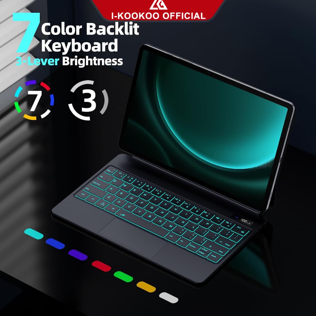 I-KOOKOO Magic Keyboard Case Wireless Bluetooth for Samsung Galaxy Tab S9/S9+ S10+ S8+/S8 Plus/S7 FE/Plus 12.4 S7 S8 S9 S1111inch