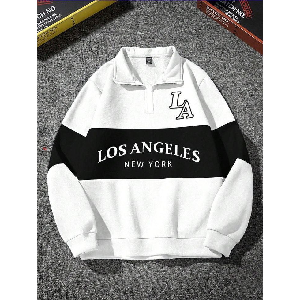 Sweater Rugby halfz zipper stripe terbaru sweater kerah CREWNECK Loseangels pria wanita