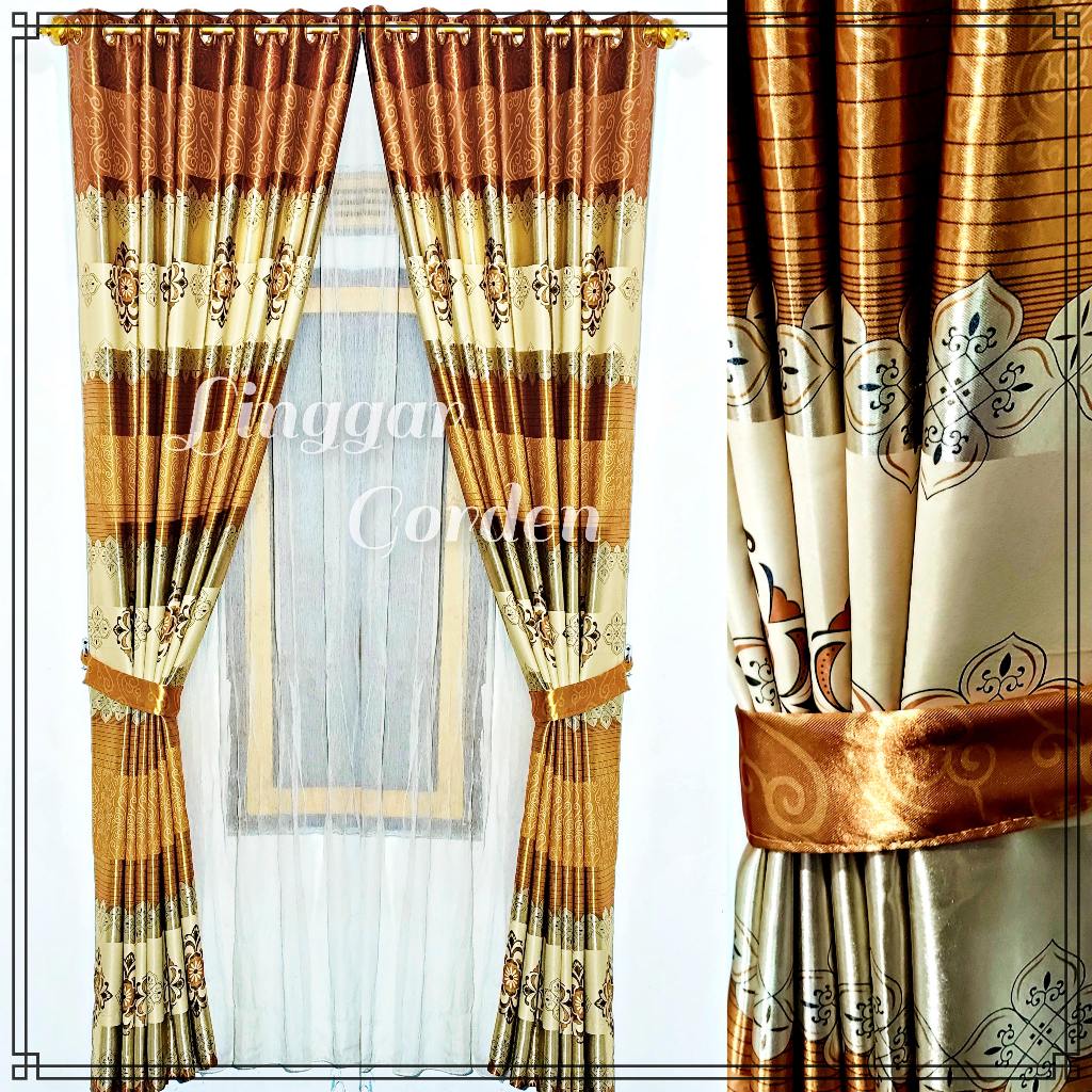 Gorden Blackout Printing Tebal Panjang 2 Meter 6 Gelombang Warna Coklat