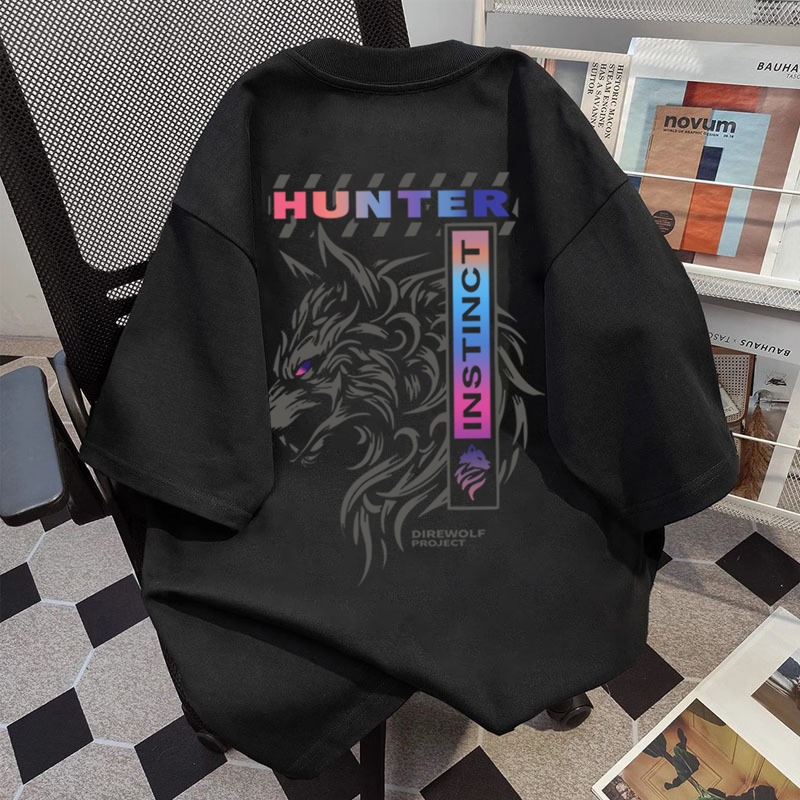 AUZY American retro Style T-shirt Oversize HUTER Print top| Kaos Wanita Hitam | Kaos pria dan wanita | Street Style 100 PERSENCotton top 11.13