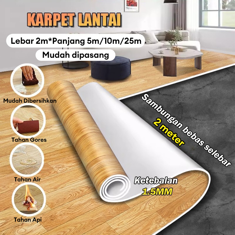 Karpet Vinyl Lantai Anti Lembab Tahan Lama [2x10m 1.5mm] Berbagai Motif Cocok R Keluarga & Kantor vinyl roll tebal