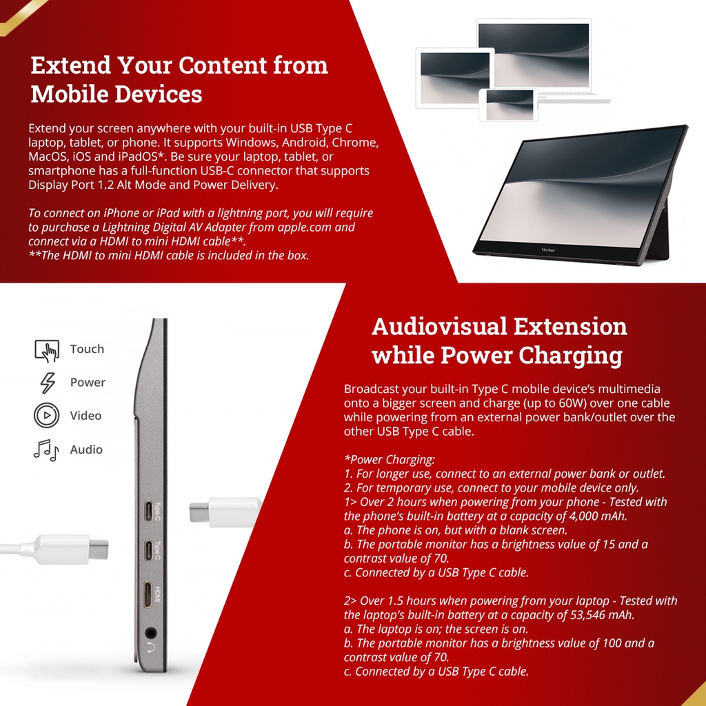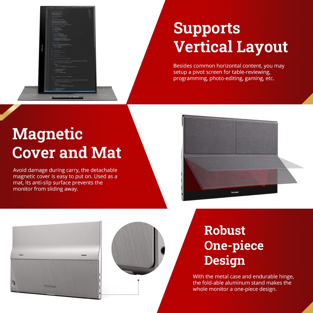 ViewSonic TD1655 - 15.6" Portable Touch Monitor | 1080p | USB-C | Frameless | Built-in Stand