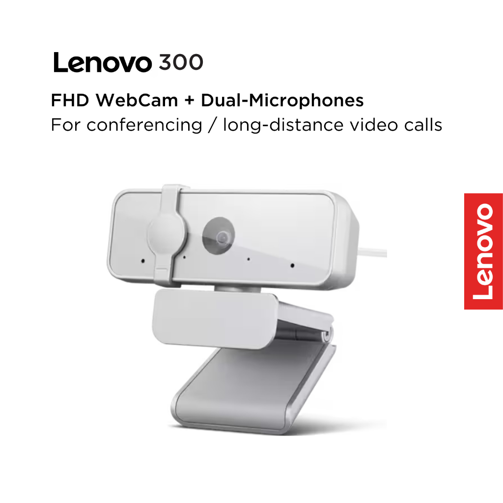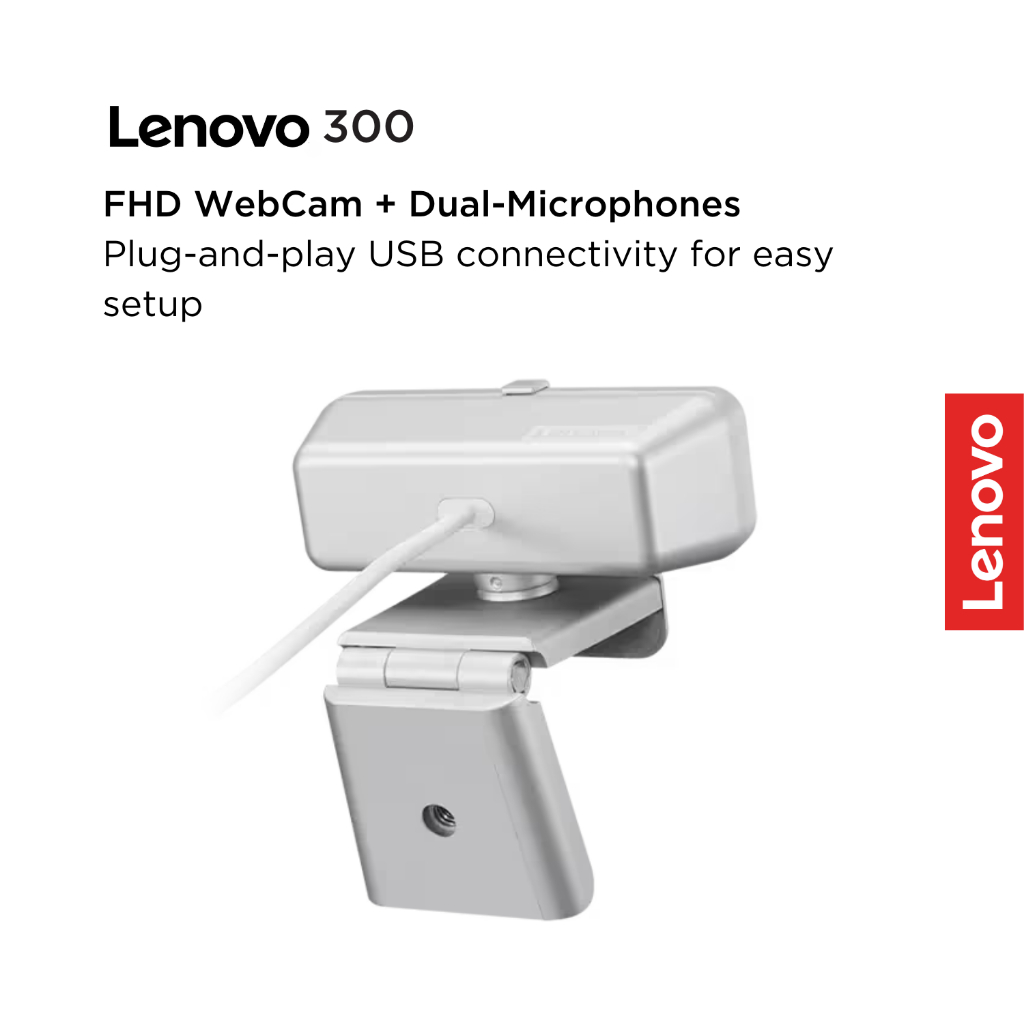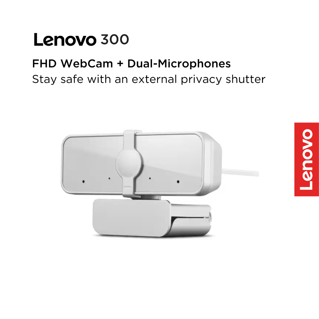 Lenovo 300 FHD Wem Full HD 1080P 2MP CMOS Camera + Dual Mic USB Wired GXC1B34793 Cloud Grey