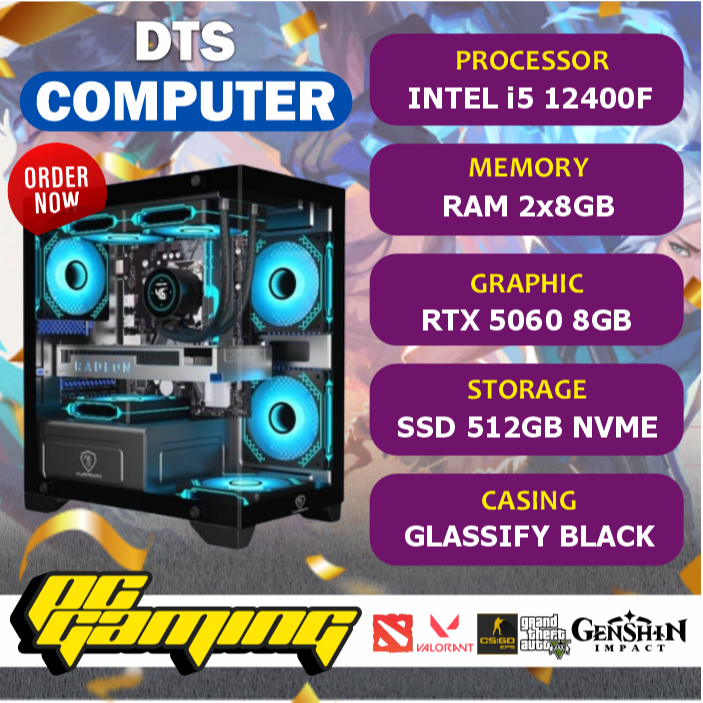 PC Gaming Gen 12 i5 12400F RTX 5060 8GB 16GB DDR5 SSD 512GB NVME Render