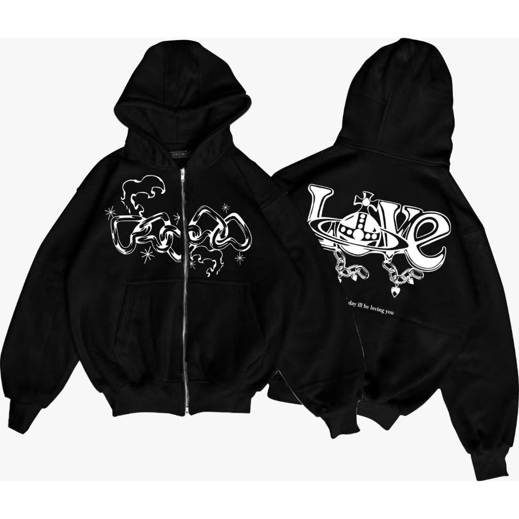 Hoodie Boxy Zipper Black FRCS Eternity Basic - Jaket Hitam Sleting Skena Boxy Oversize Terbaru Pria & Wanita Katun Flacee 280GSM