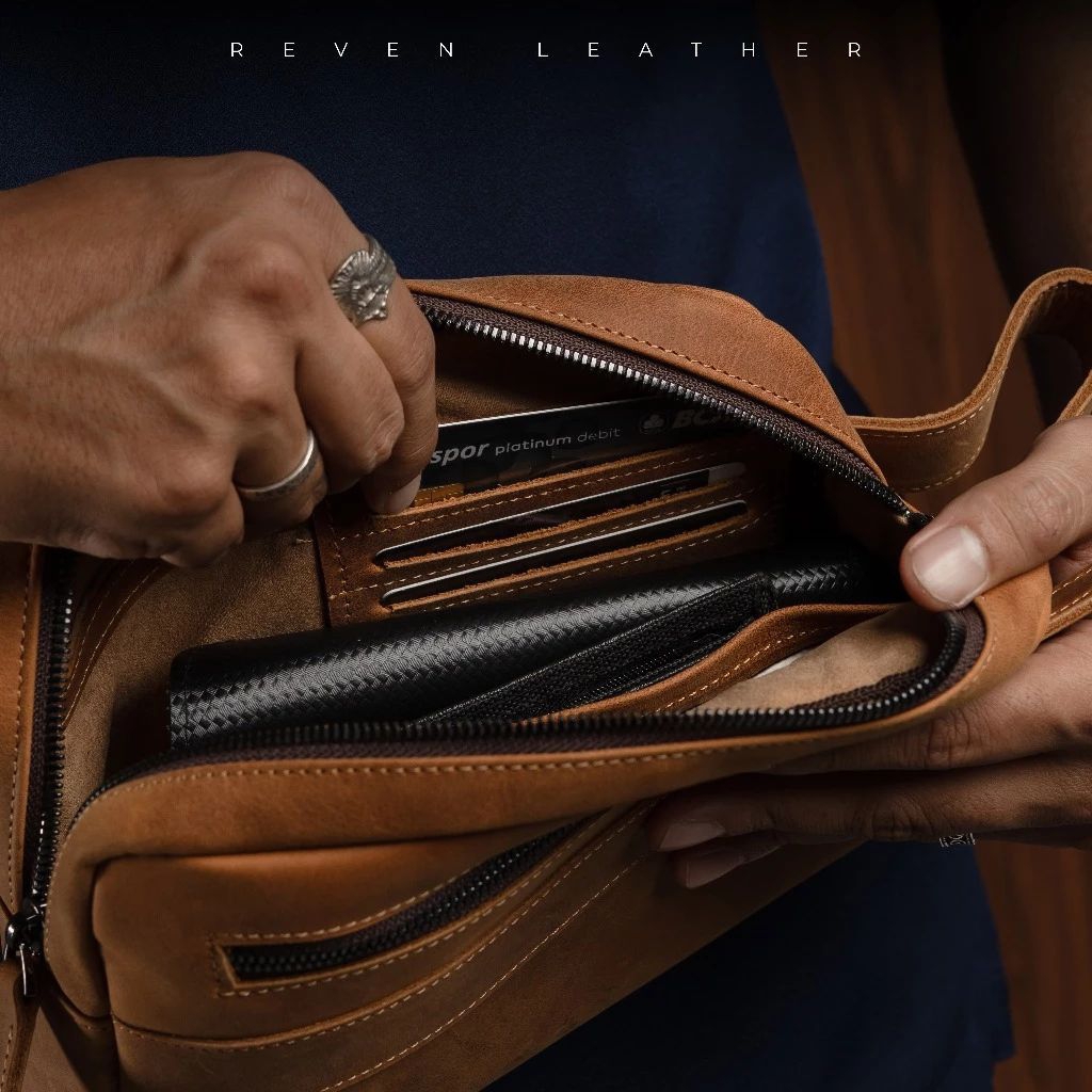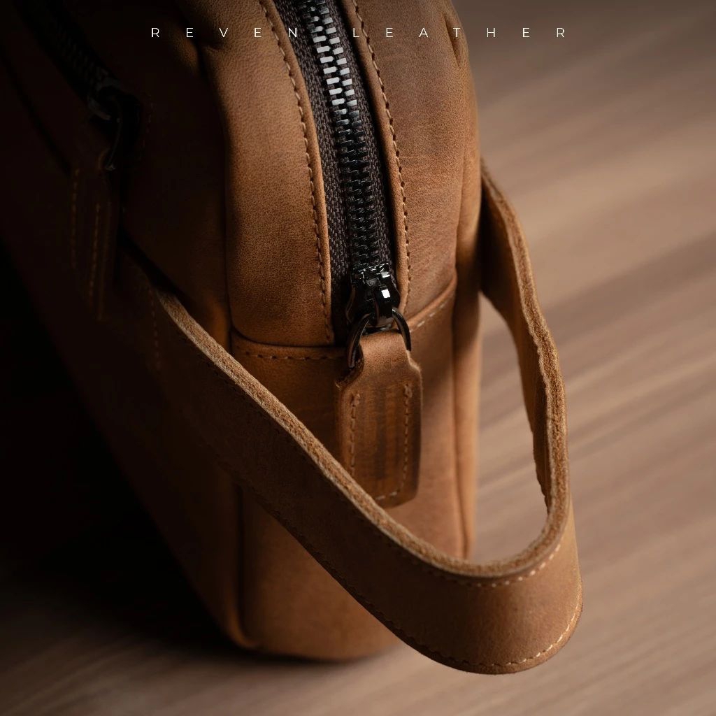 Reven Leather Gio Handbag - Tas Tangan Pria Clutch Cowok Bahan Kulit Sapi Asli Crazy Horse Original