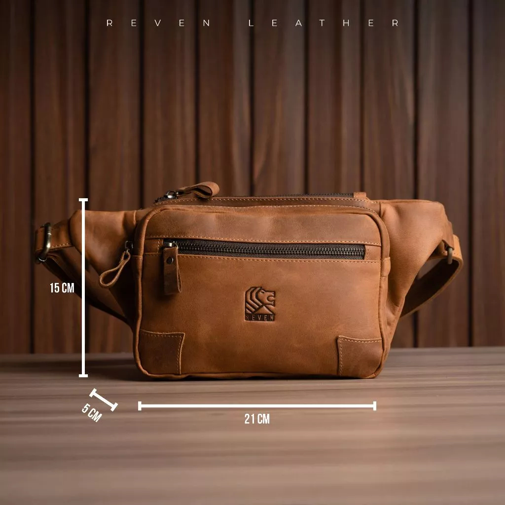 Tas Kulit Selempang Reven Hazar Waistbag Fashion Pria Cowok Kulit Sapi Asli Original Premium Leather