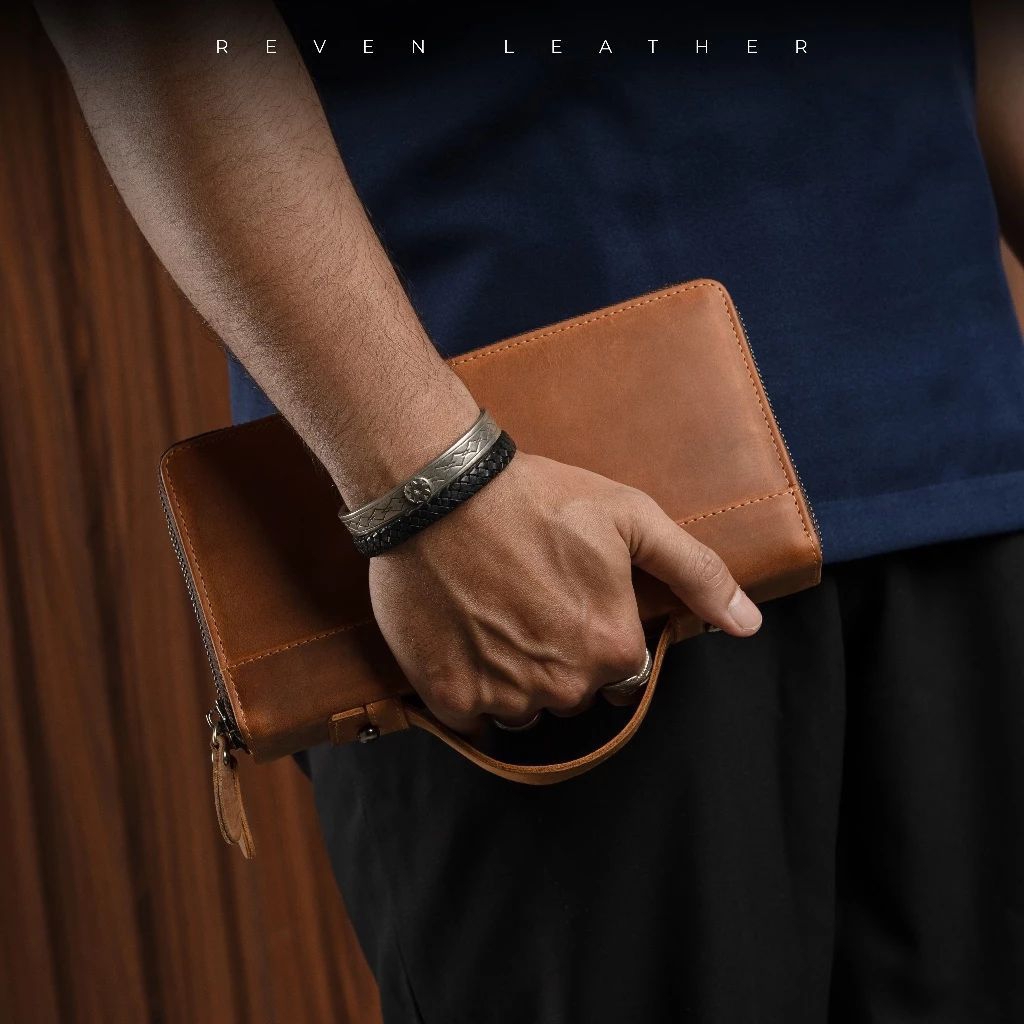 Reven Leather Benicio Handbag - Tas Tangan Pria Clutch Cowok Bahan Kulit Sapi Asli Crazy Horse Premium Original