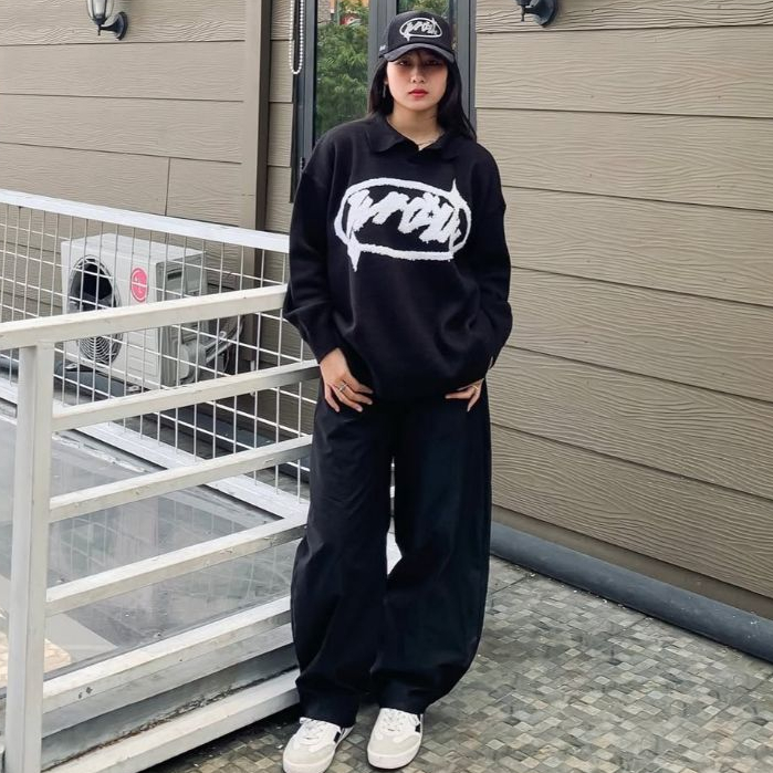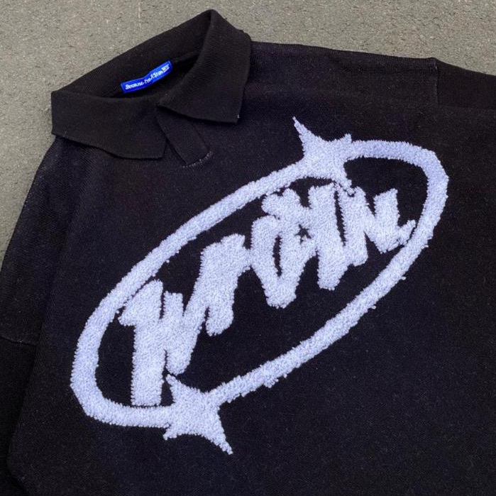 WP Company - Knitwear BOXY Delight Black Football Knit Switer Unisex /Sweater Rajut Pria & Wanita