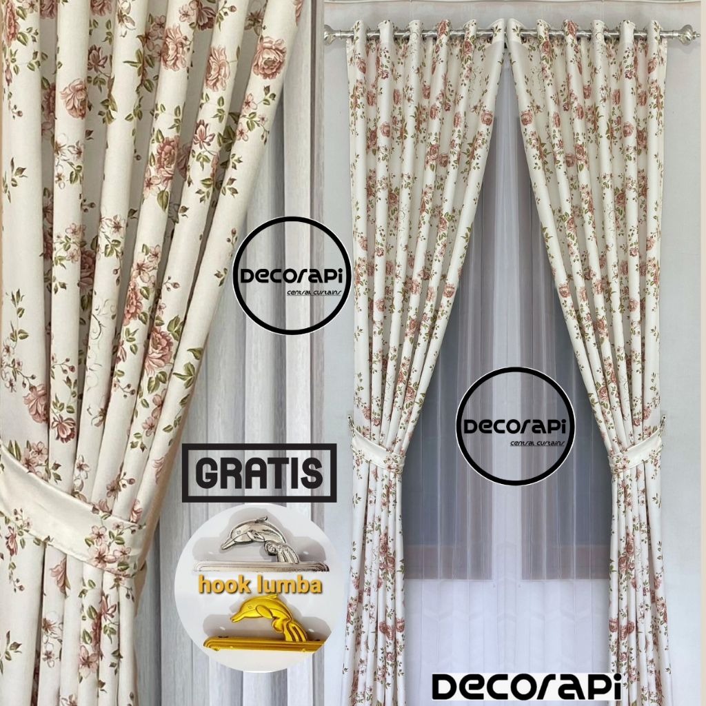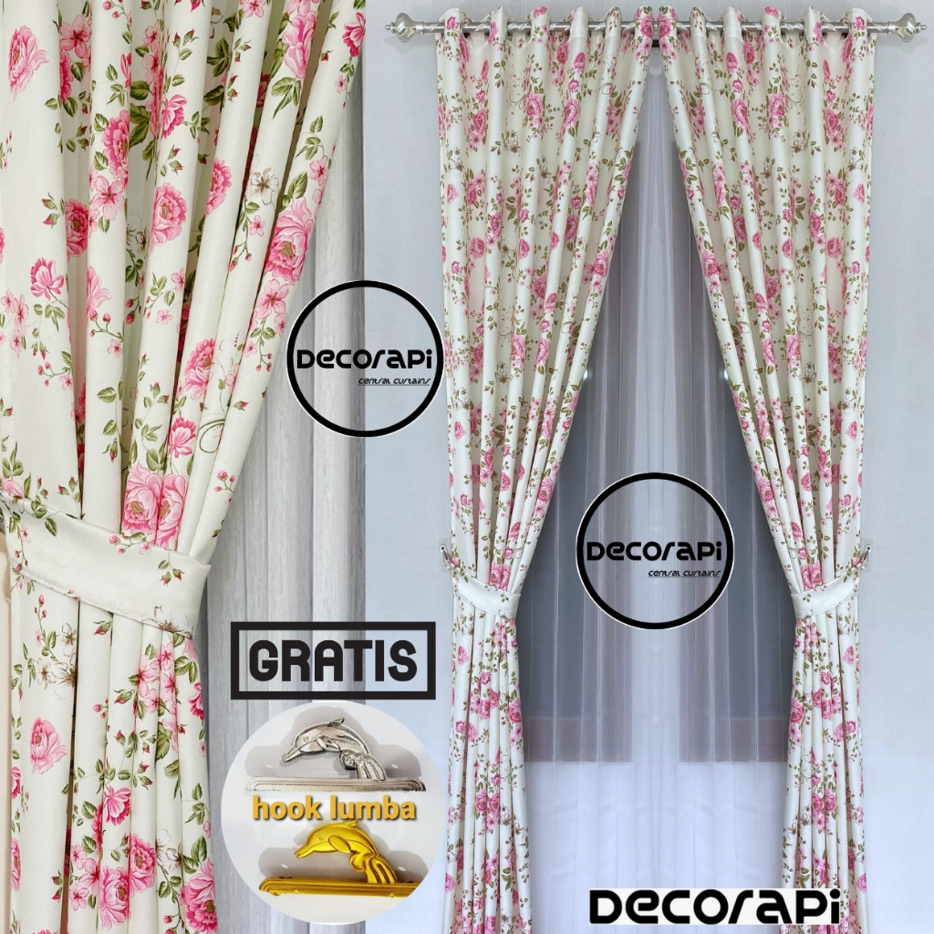 Gorden Jendela & Pintu Blackout Shabby Chic Pink Model Smokring Ukuran Lebar 100 Cm X Tinggi 2 mtr