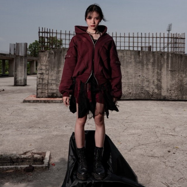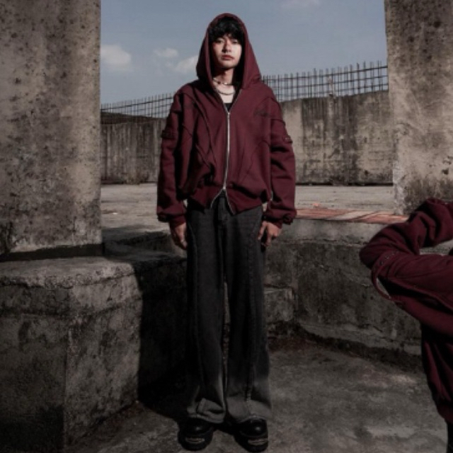Amertanslook Fusion Hoodie - Boxy Cut Maroon Uni