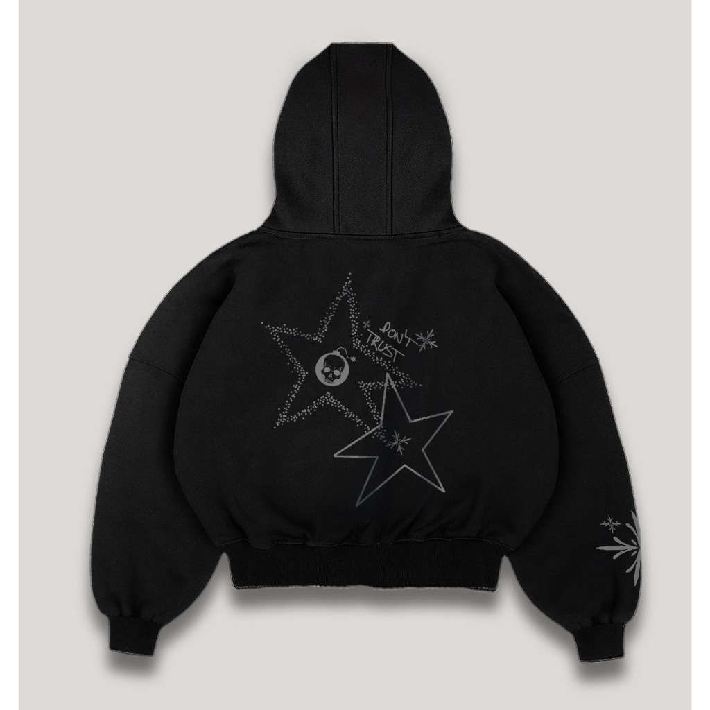 DTRT - HOODIE BOXY DOUBLE ZIPPER HITAM PRIA SKENA JAKET HOODIE SWEATER OVERSIZED COUPLE - FREE GIFT
