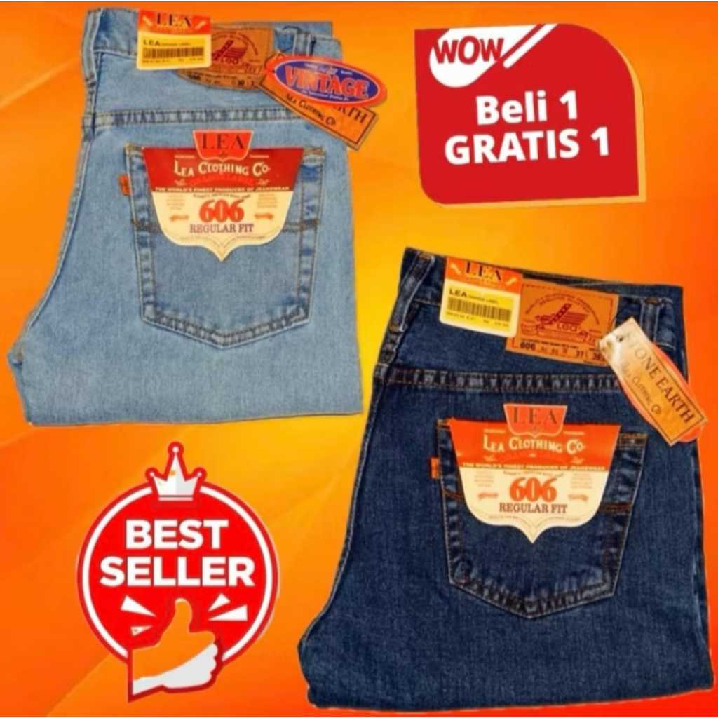 Beli 1 Gratis 1 Buy One Get One Celana Jeans Standar Panjang Lea Model Reguler Cowok Mapan