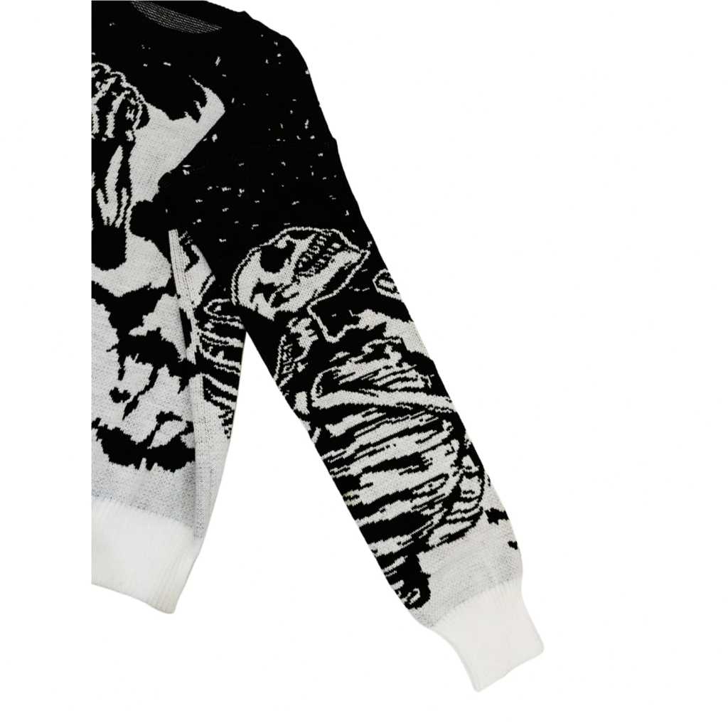 msa Sweater Rajut Skeleton Flame Unisex – Black White knitwear akrilik oversize