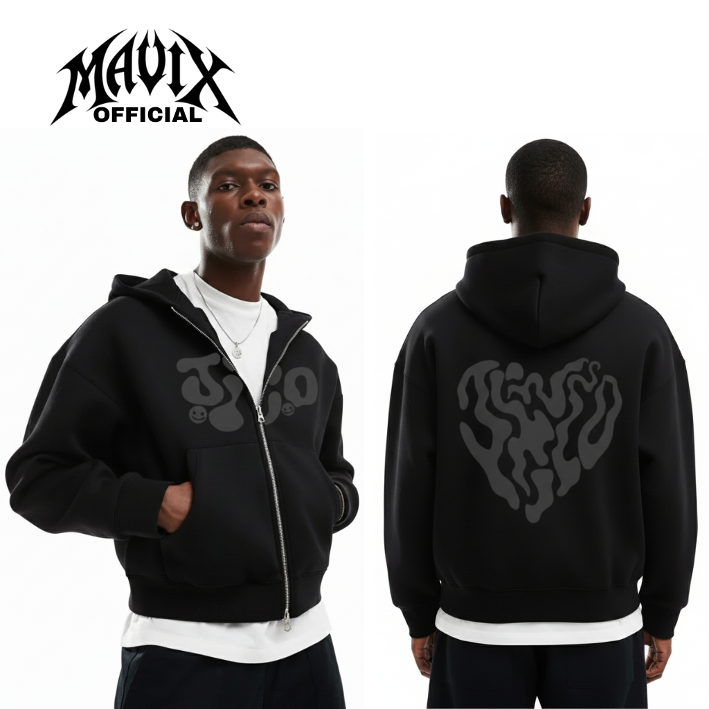 MAVIX - Hoodie BOXY OVERSIZE HITAM (J LOVE ABU ) DOUBLE ZIPPER TEBAL STREETWEAR Uni