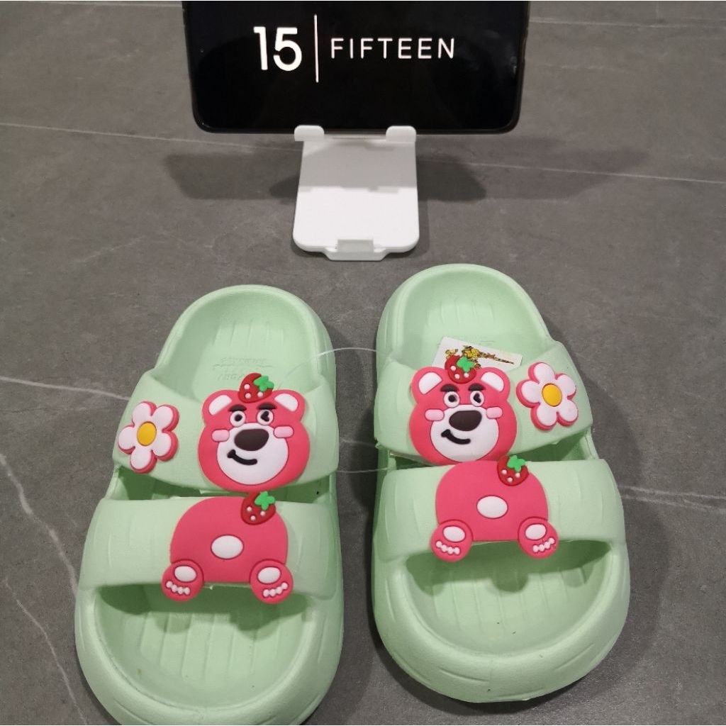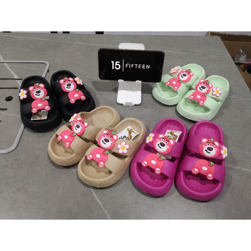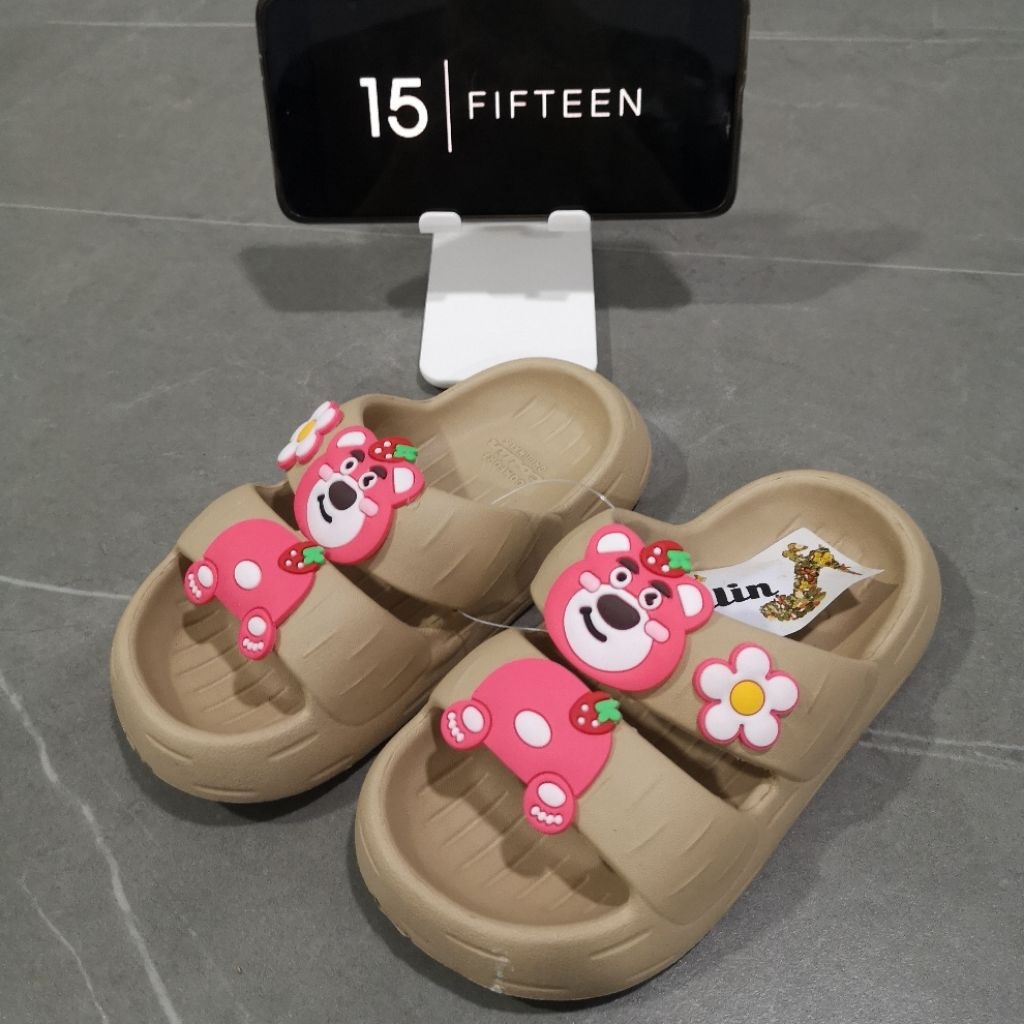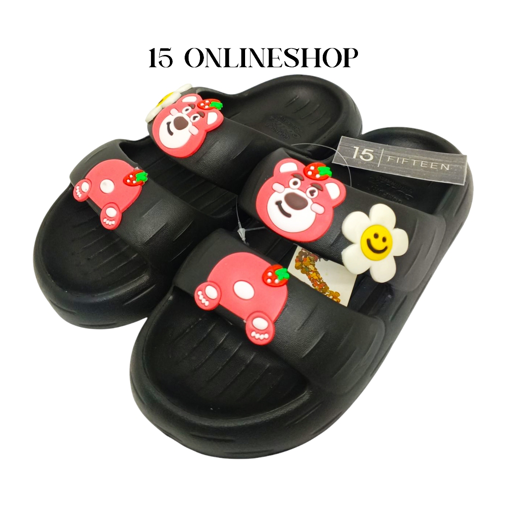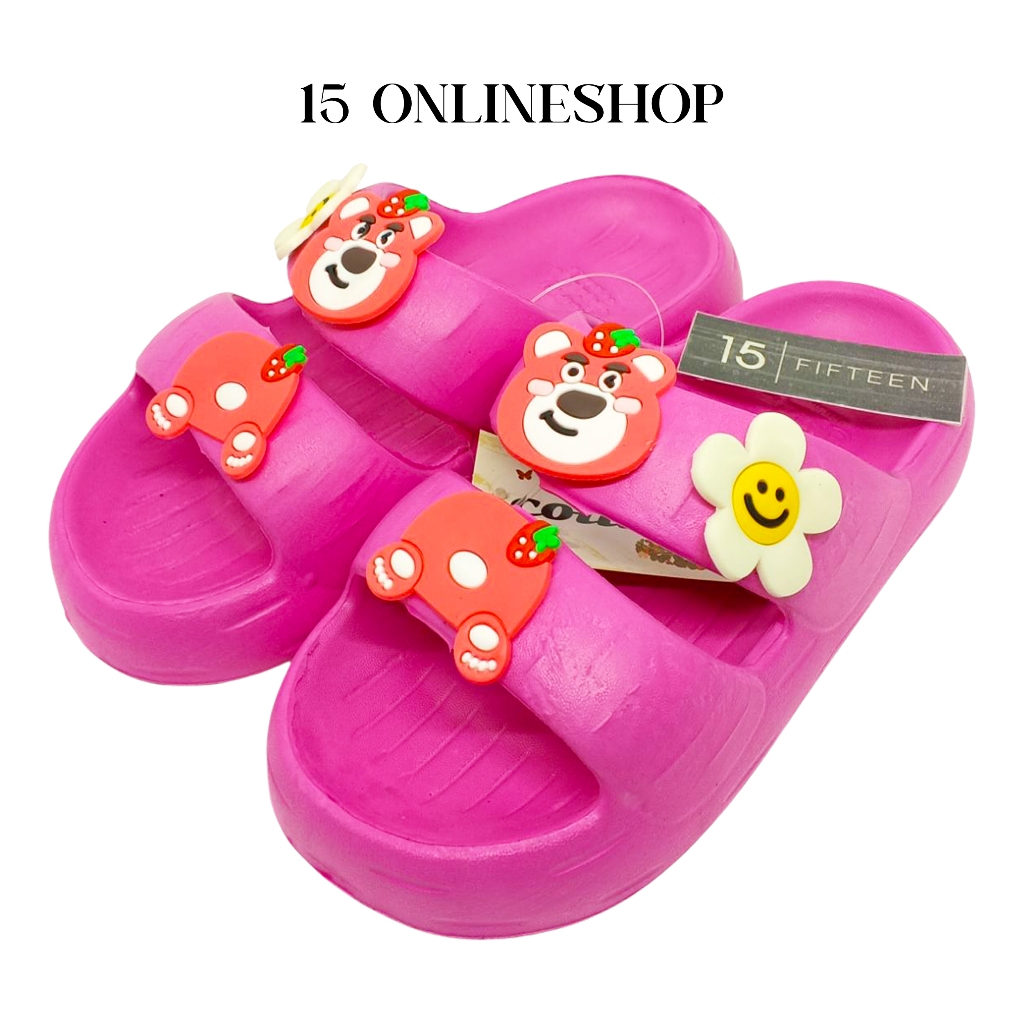 Sandal Anak Perempuan Bear Bunga Sendal Cewek Kekinian Lucu Ringan Nyaman Karet Pink Hitam 6137-T1
