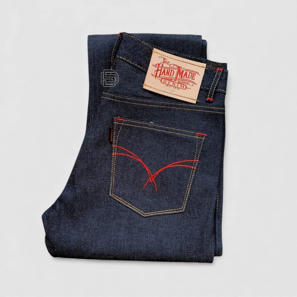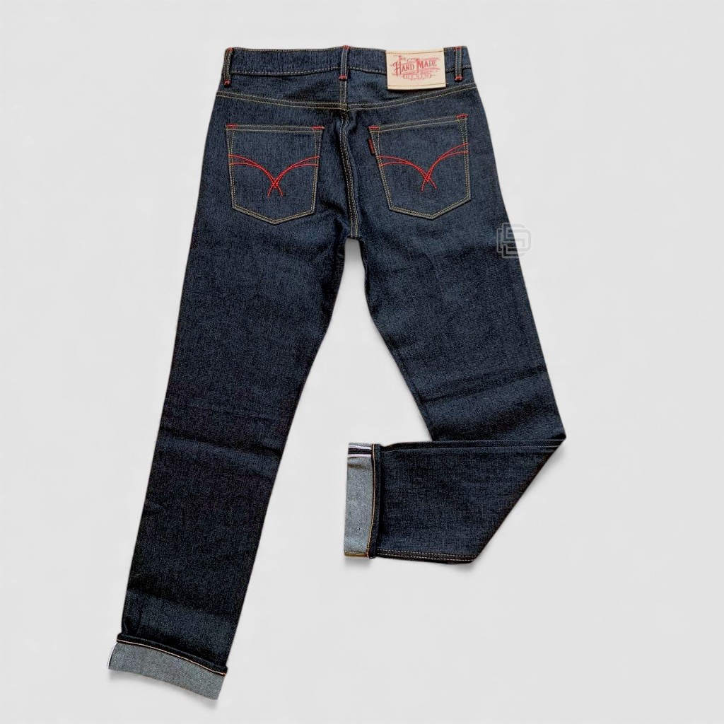 HANDMADE - Celana Jeans Pria Original Slimfit Selvedge Accent Raw Denim Sanforized 15oz Black Indigo