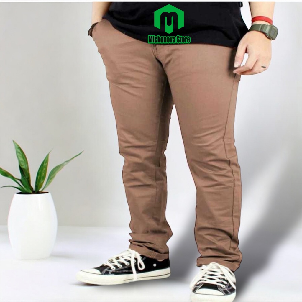 Big Size Celana Chino Panjang Pria Jumbo Cinos Slim Fit Bahan Melar Stretch