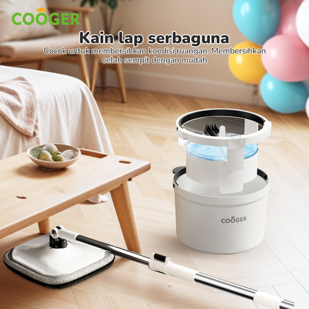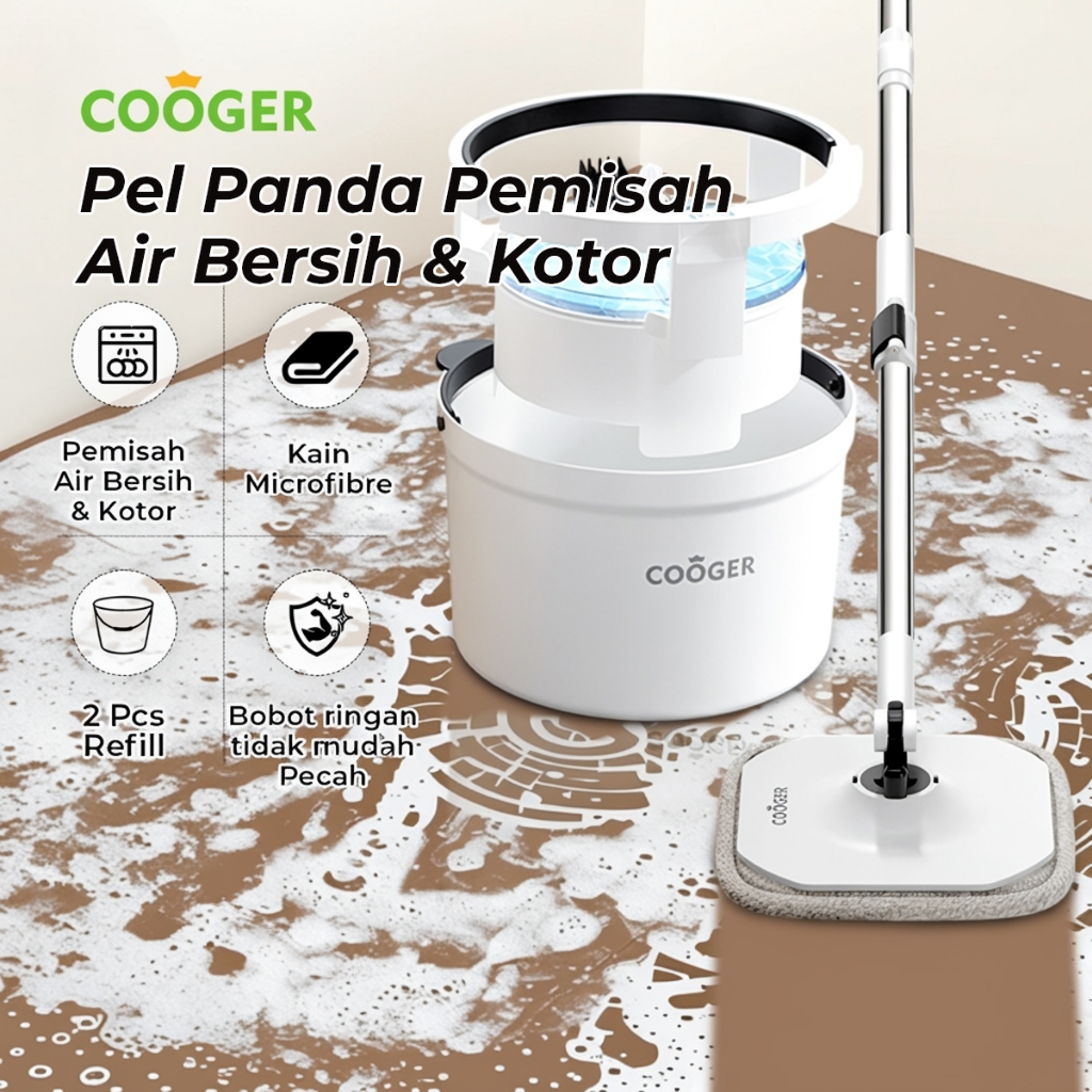COOGER Alat Pel Lantai Putar Plus Bentuk Panda Single Bucket Plus Spin Mop 2IN1 Panda Dual Teknologi Pemisah Air Kotor Dan Bersih Dalam Satu Ember