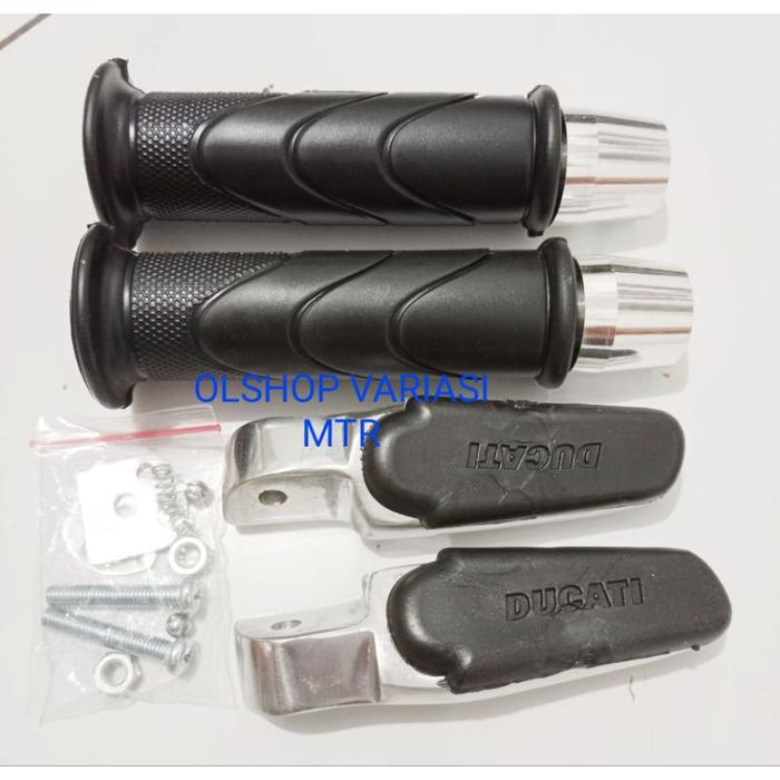 c06(3in1) PAKET FOOTSTEP CNC KARET DUCATI SET GRIP HONDA PLUS JALU STANG SEMUA JENIS MOTOR Motorcycle - STEP DUCATI AJA