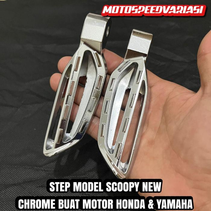 FOOTSTEP STEP PIJAKAN FUSTEP INJEKAN KAKI BELAKANG SCOOPY NEW K2F SATU SET PNP SEMUA MOTOR HONDA YAMAHA - chrome